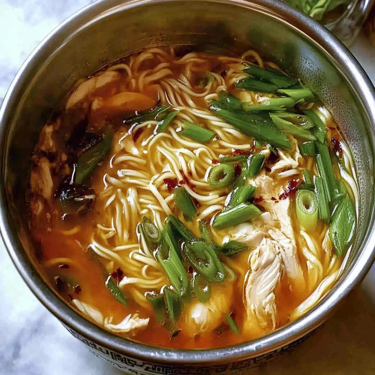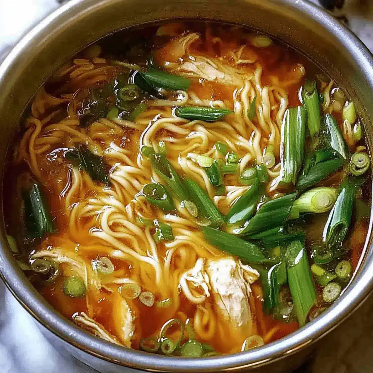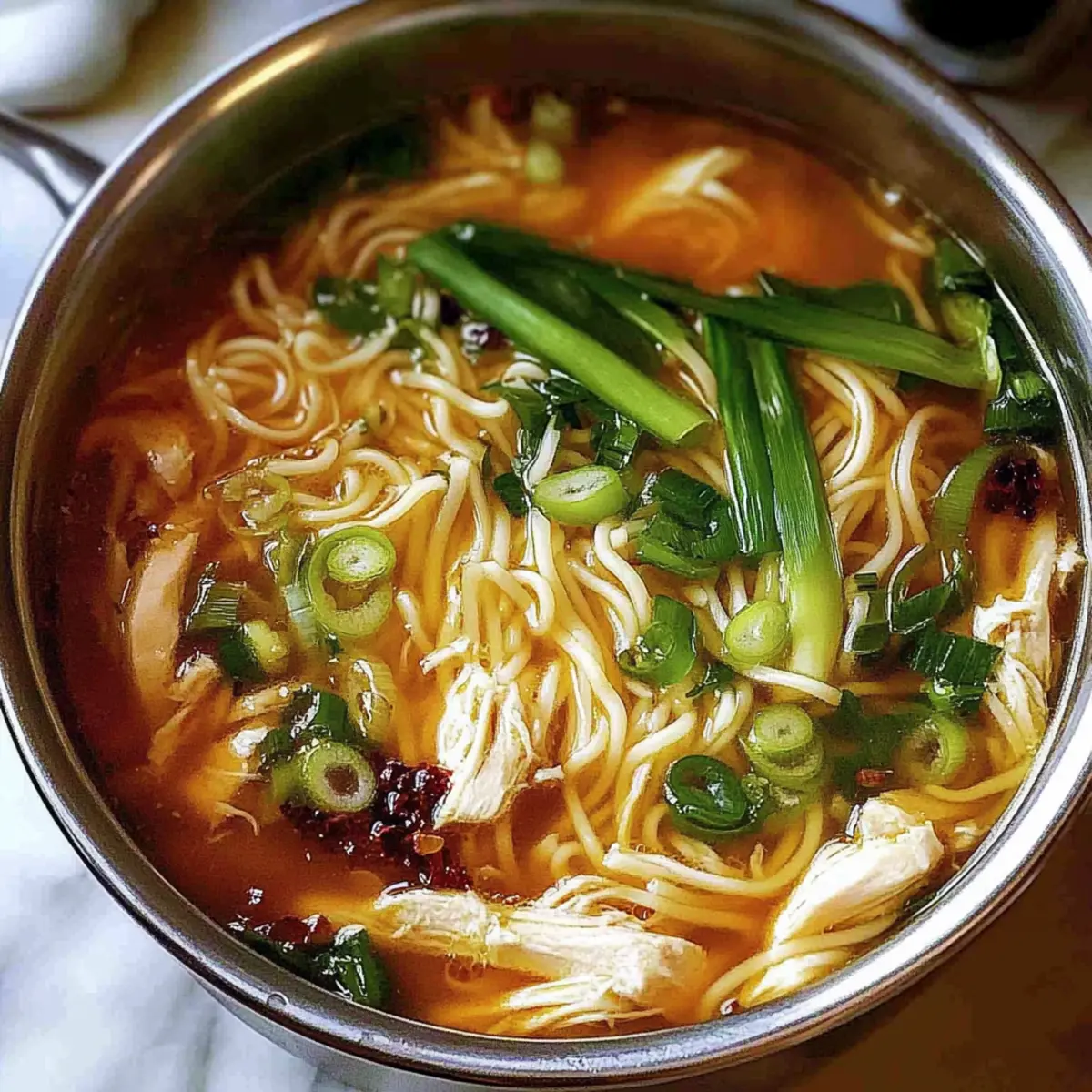 These Aromatic Ginger Scallion Chicken Noodle Soup is perfect for busy home cooks looking to save time! You can prep the base—chicken, garlic, ginger, and scallion whites—up to 24 hours in advance, refrigerating in an airtight container. Cook the broth and let it cool completely before storing; this will preserve the flavors and ensure tender chicken. The noodles can be cooked fresh so they maintain their texture, or you can prepare them separately and store them for up to 3 days in the refrigerator. When you’re ready to serve, simply reheat the broth and add the noodles, then garnish with fresh scallion greens and your homemade sauce for cozy, delicious results with minimal effort!