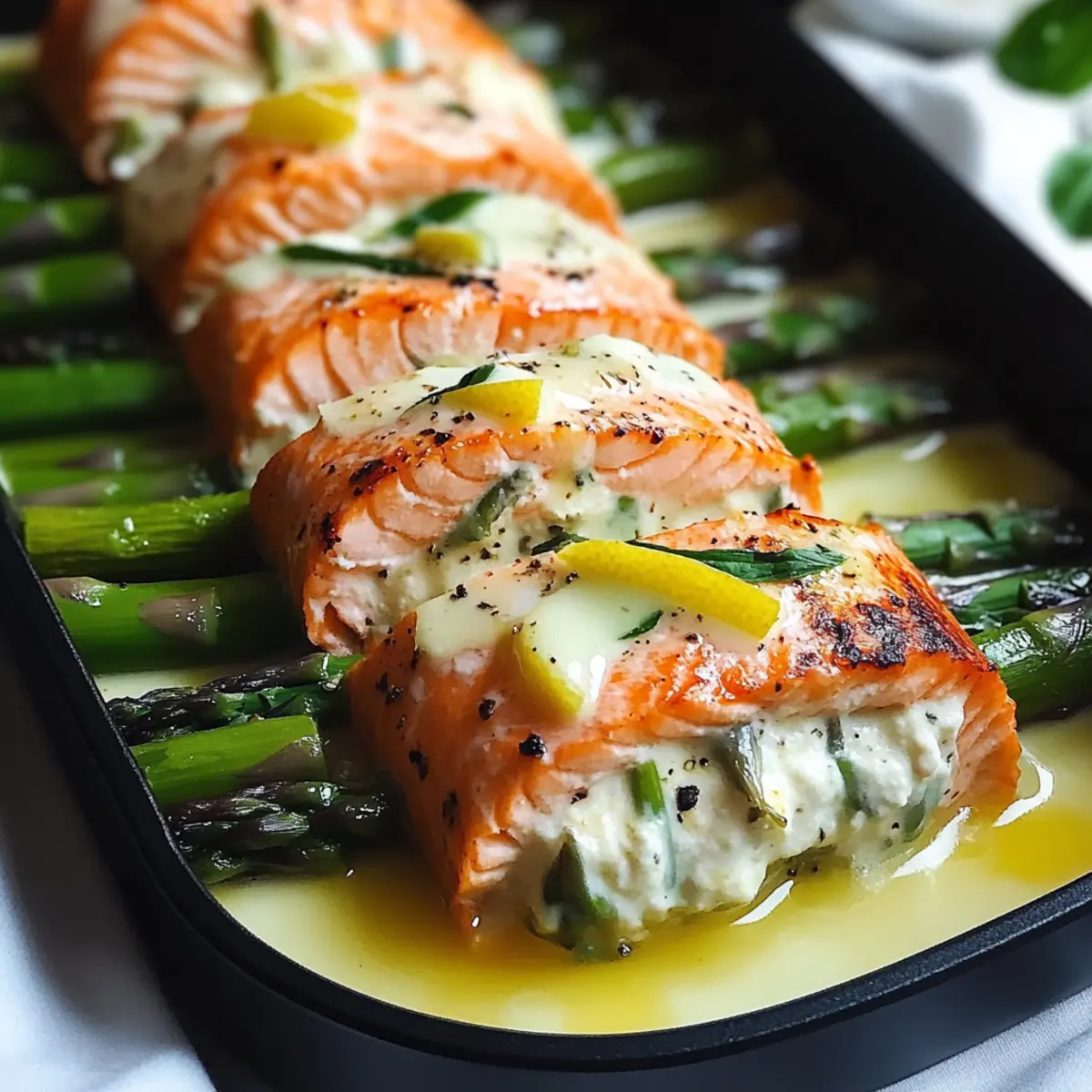 Bright, Flavorful Ingredients: The combination of asparagus, lemon, and basil creates a vibrant filling that contrasts beautifully with the rich, flaky salmon.