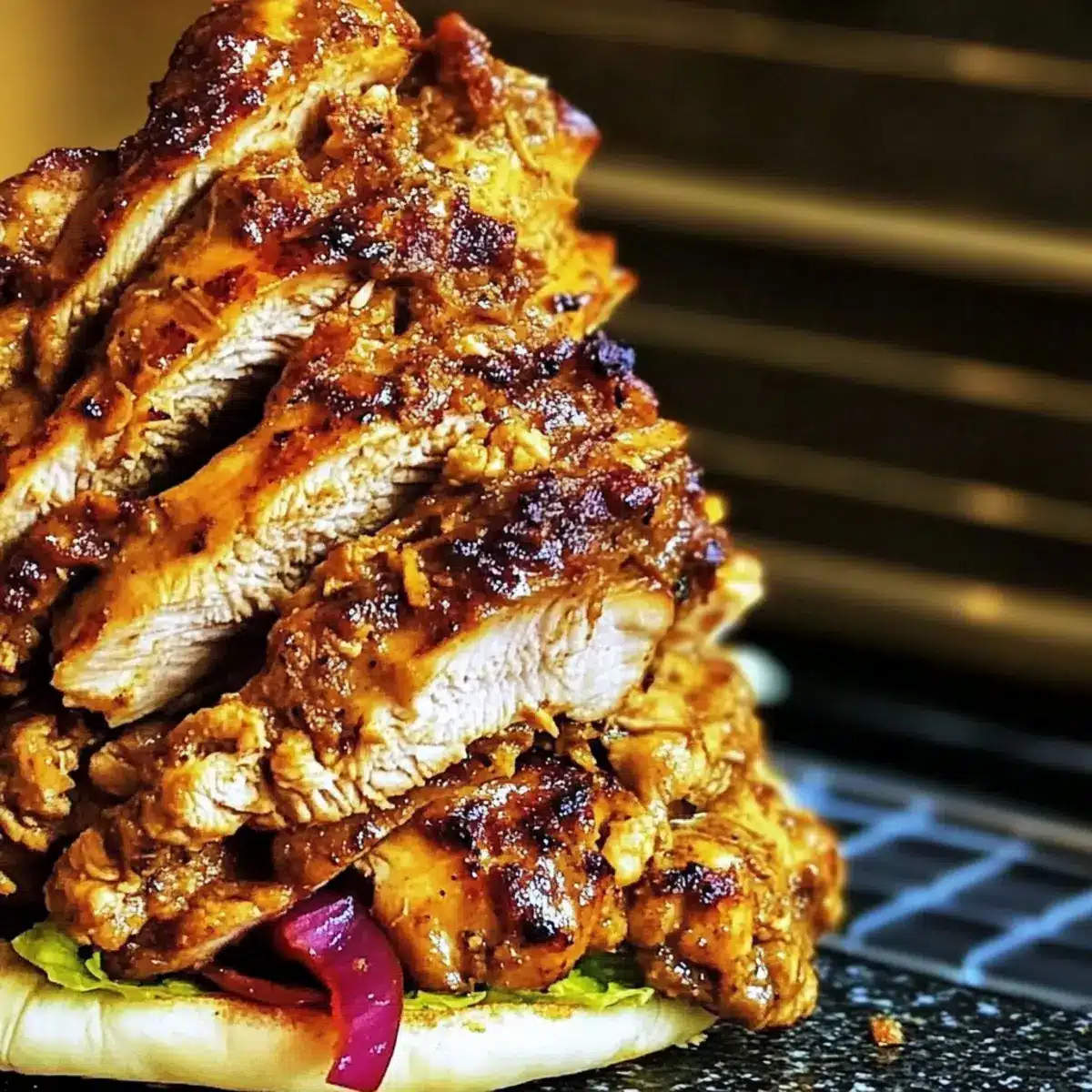 Authentic Flavors: Experience the true taste of Greece with marinated chicken thighs that pack a punch of flavor in every bite. Quick & Easy: This recipe is straightforward, ideal for those busy weeknights or casual gatherings. Crowd-Pleasing: Serve these gyros at parties, and watch them disappear—they’re a favorite for all ages! Versatile Serving: Enjoy these delicious shavings in pita pockets, salads, or wraps, paired with our creamy tzatziki sauce. If you’re a fan of savory dishes, don’t forget to check out our Honey Lime Chicken or our Cheesy Chicken Garlic Sandwich for more culinary inspiration!