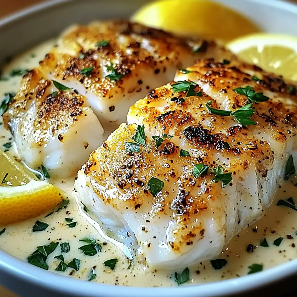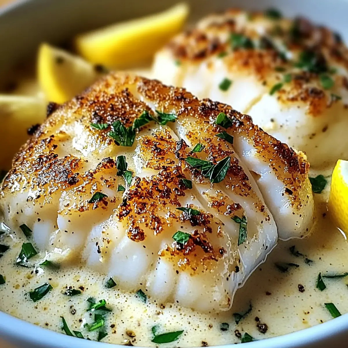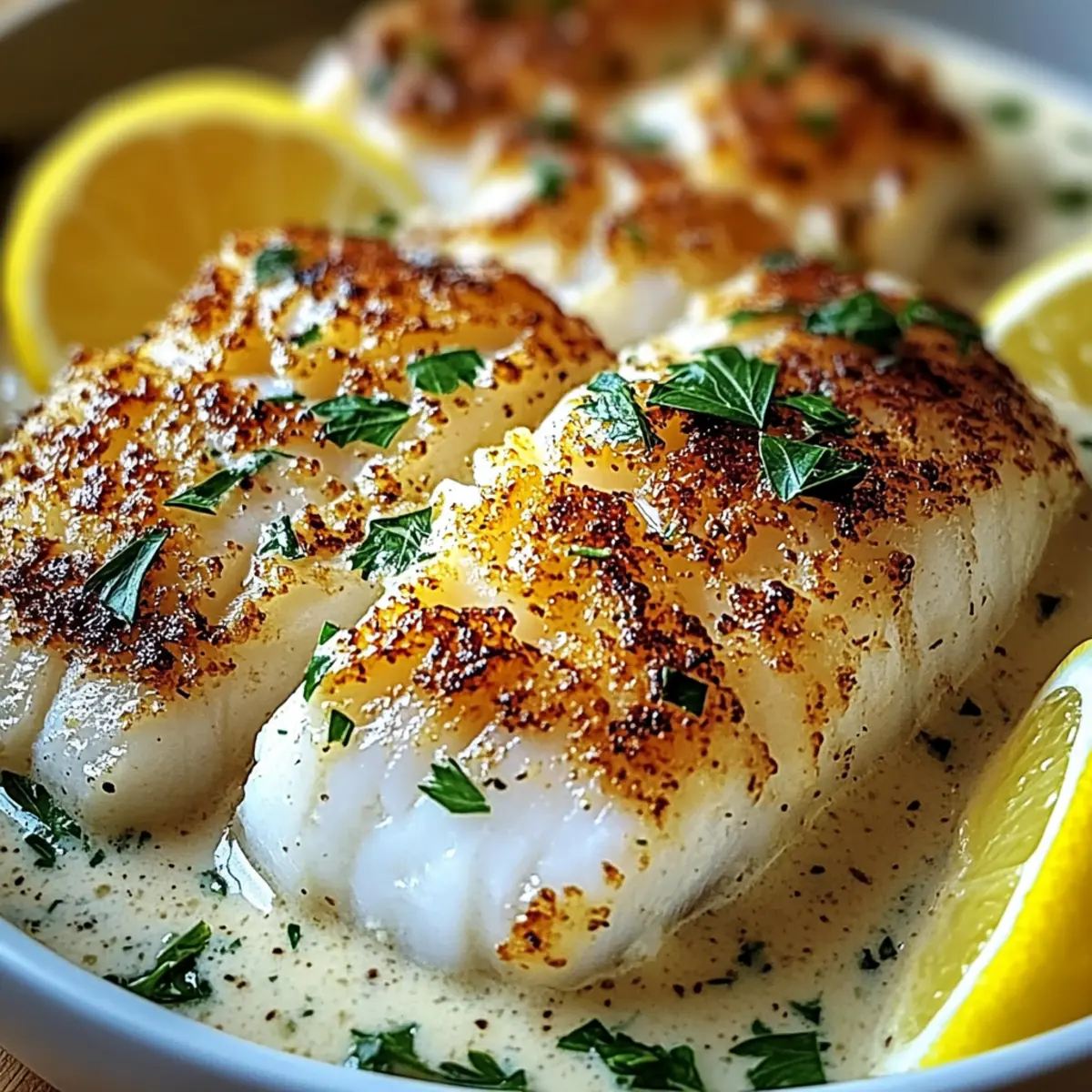 Baked Cod With Creamy Garlic Sauce & Lemon for Effortless Elegance