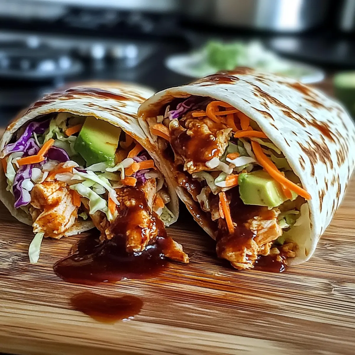 As the evening sun sets, I find myself leaning against the kitchen counter, inhaling the sweet-savor aroma wafting from my stovetop. Tonight’s dinner? BBQ Chicken Wraps! This recipe combines juicy, tender chicken slathered in tangy BBQ sauce with a refreshing crunch of homemade coleslaw, all wrapped snugly in a warm tortilla. Not only are these wraps a quick and easy meal—perfect for weeknights busy with family activities—but they’re also incredibly flexible. You can toss in leftover chicken or whatever veggies you have lying around, making them a great option for meal prep. I never get tired of the deliciousness tangled up in each bite! Ready to roll up your sleeves and whip up this crowd-pleaser? Let’s dive into making the perfect BBQ Chicken Wraps!