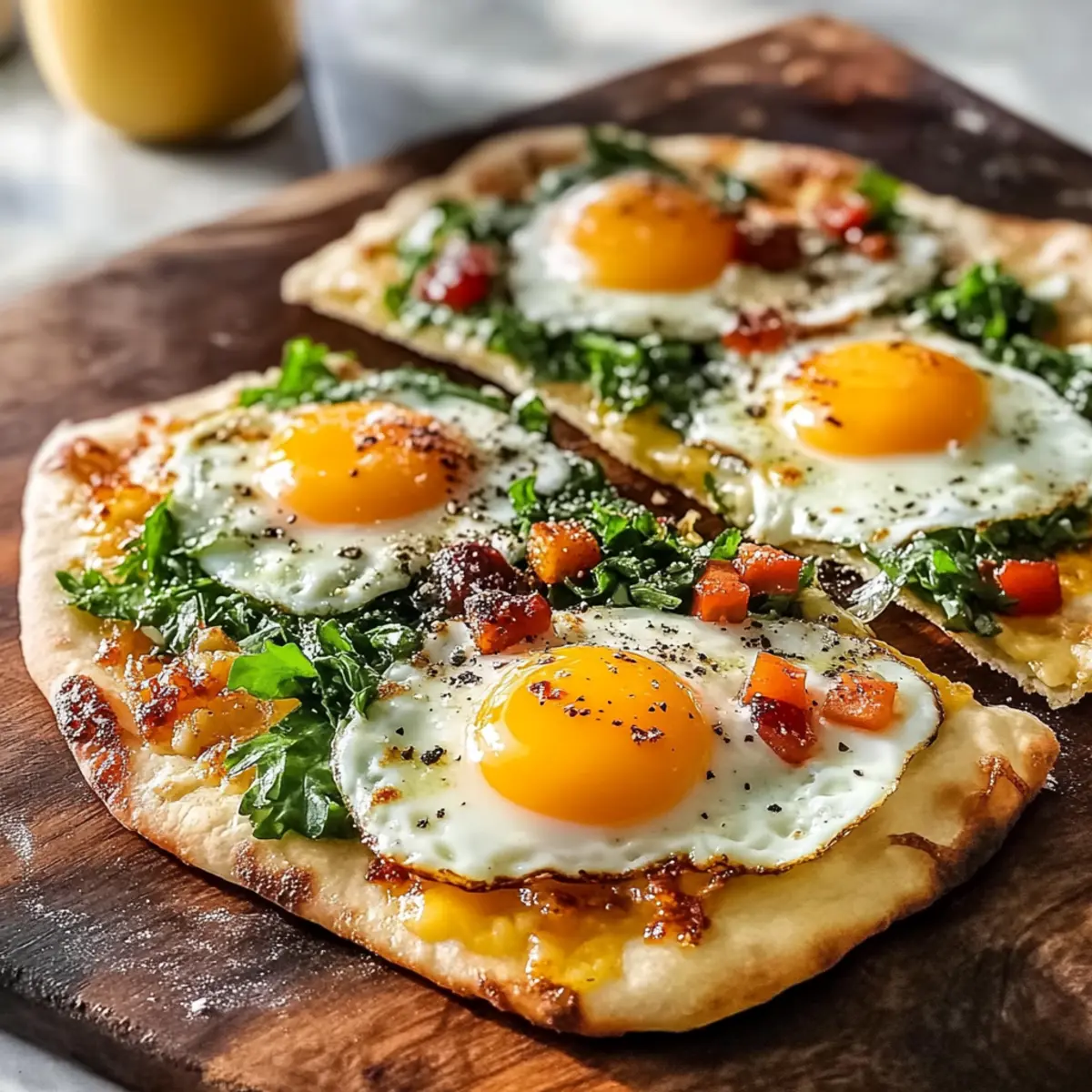 Begin by preheating your oven to 425°F (220°C). This temperature ensures that your flatbreads will bake to a crispy perfection while allowing the eggs to cook evenly. As the oven warms, gather your ingredients and prep your workspace to make the assembly process smooth and enjoyable.