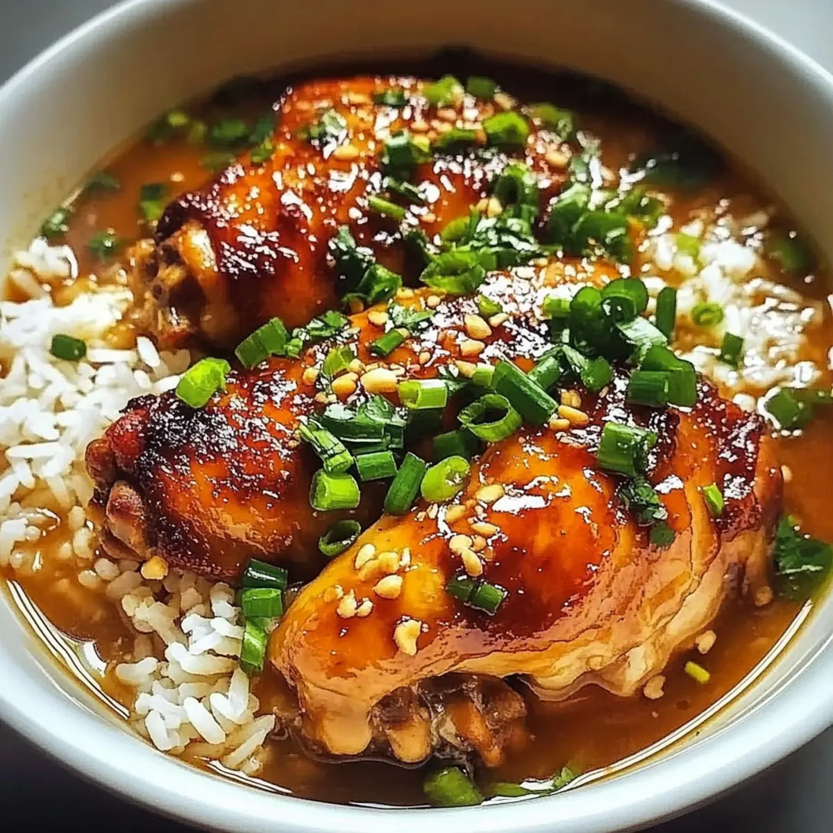 Caramelised Soy Chicken in Garlic Ginger Broth Over Rice