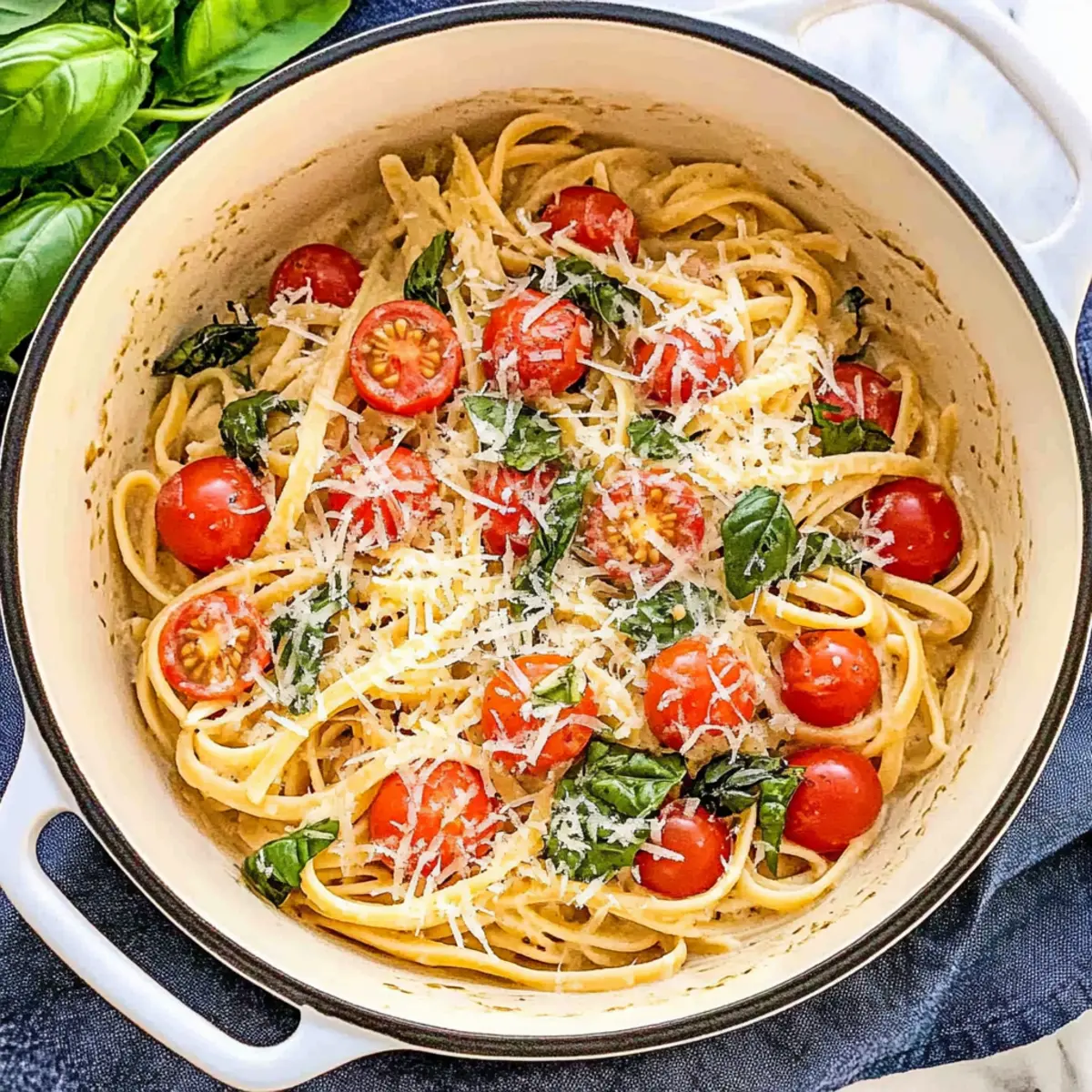 Creamy One Pot Pasta with Cherry Tomatoes & Basil Delight