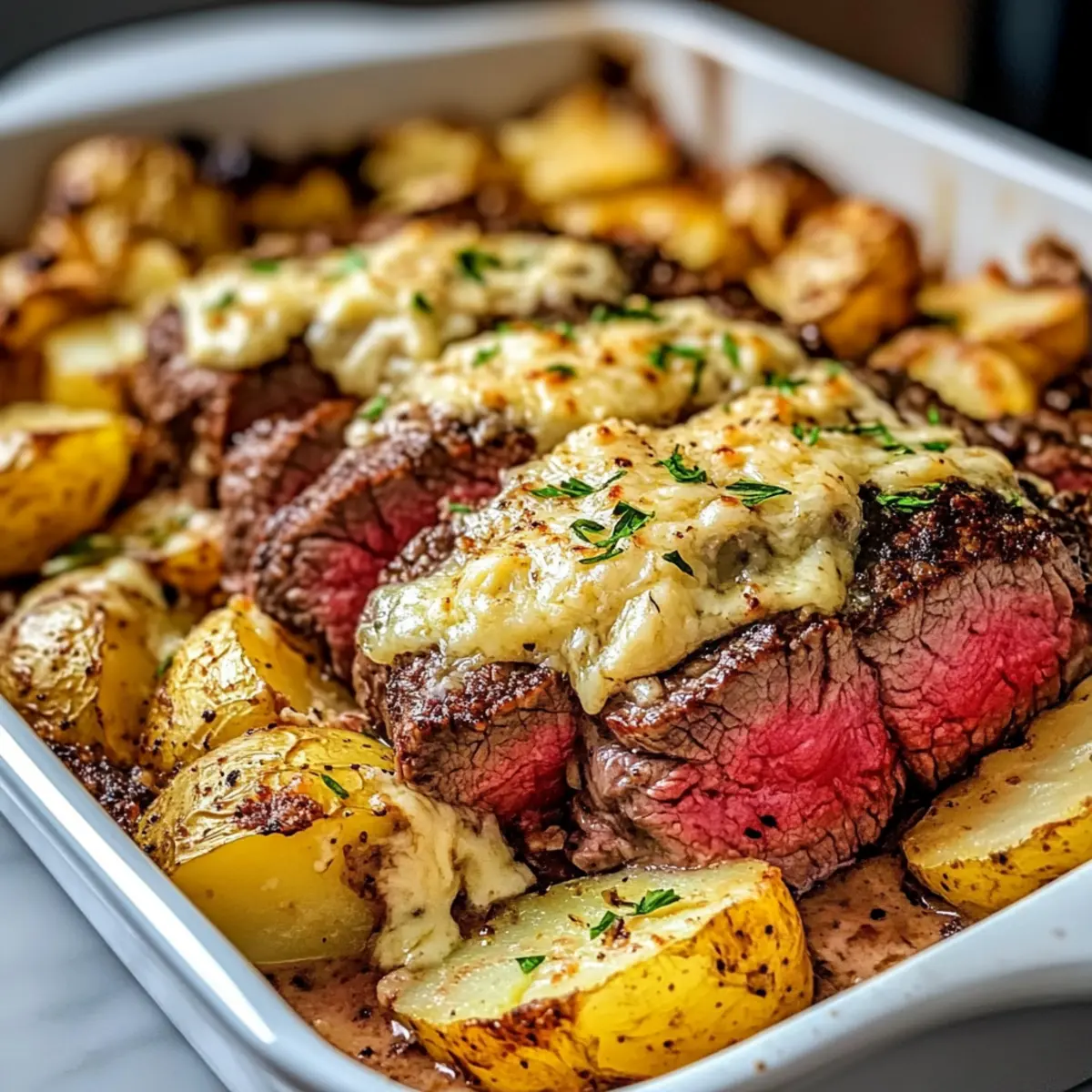Garlic Butter Steak & Cheddar Potato Bake You’ll Crave Every Time