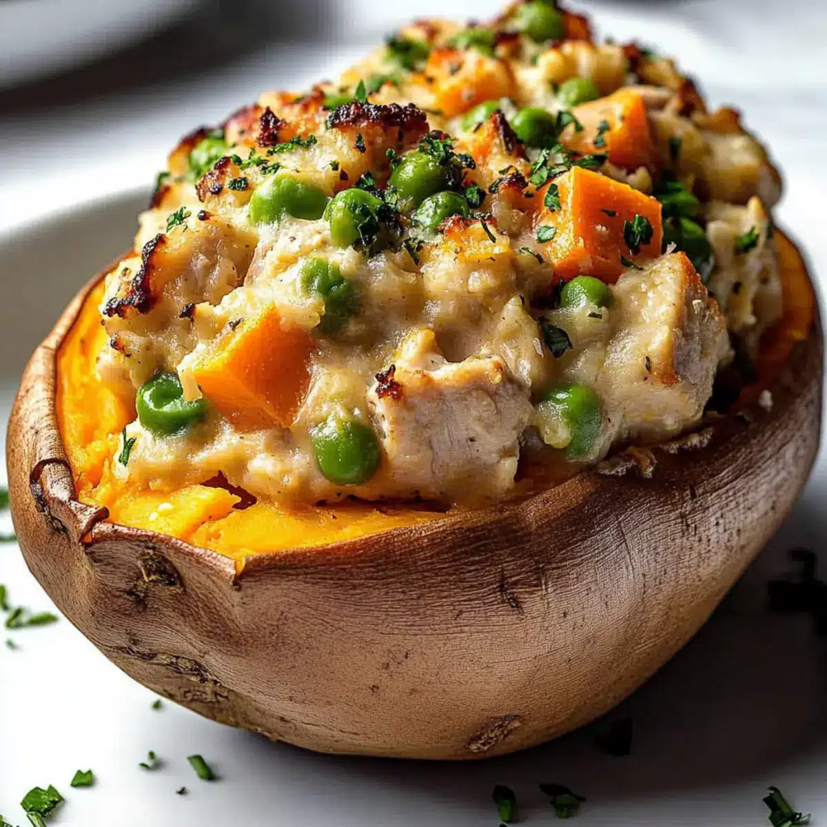 Comforting Chicken Pot Pie Stuffed Sweet Potatoes You’ll Love