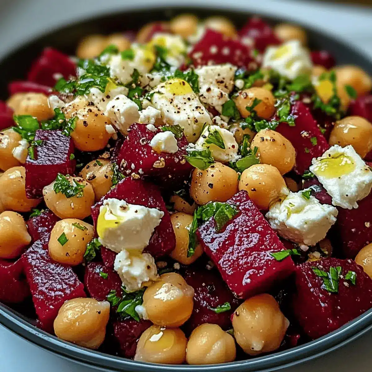 Vibrant Colors: The stunning contrast of earthy beets, creamy chickpeas, and tangy feta makes this salad a showstopper on any table.
