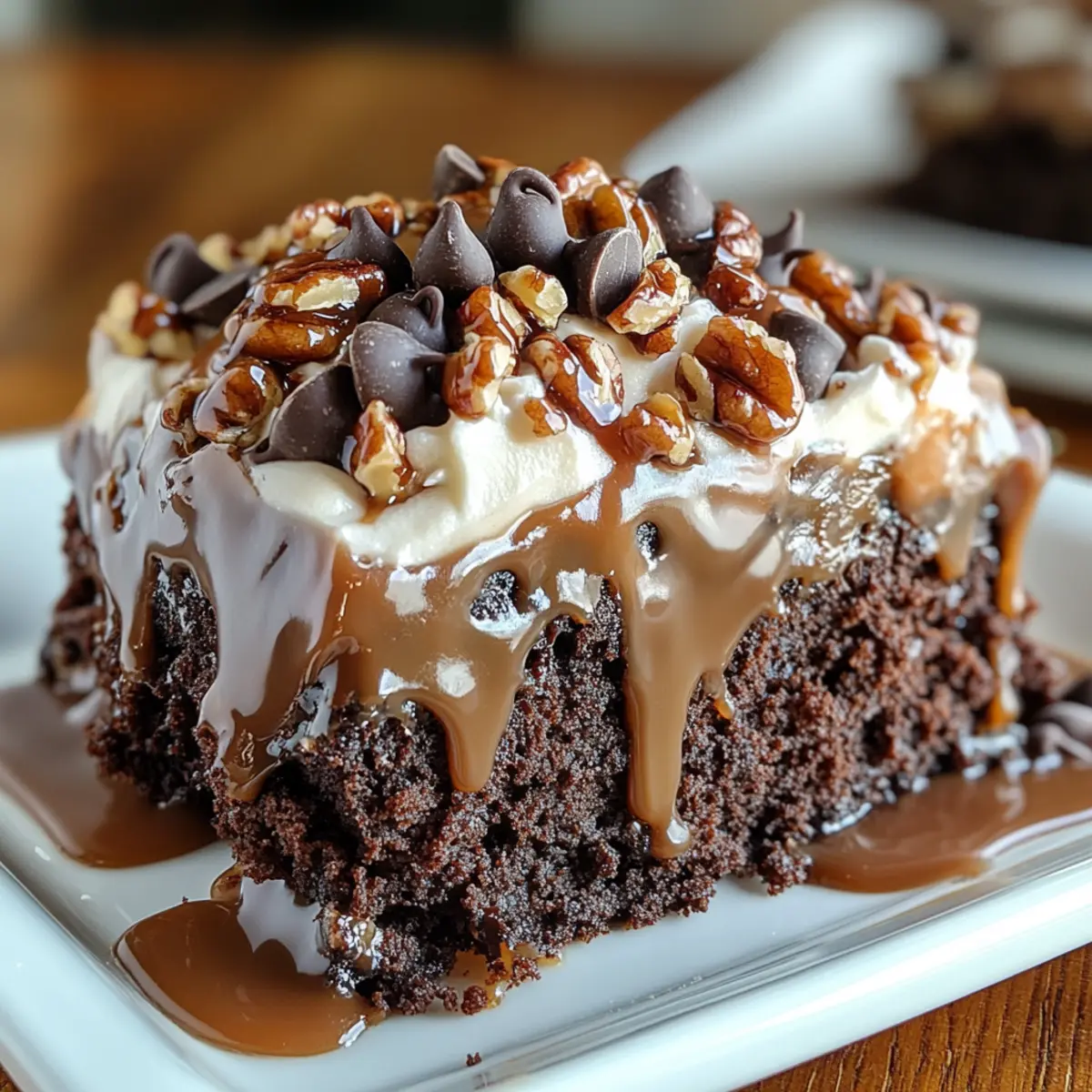 As I pulled the moist cake from the oven, the rich scent of chocolate enveloped my kitchen like a warm hug. This Turtle Chocolate Poke Cake is not just a dessert; it’s a heartfelt way to say, “I care,” whether it’s for friends, family, or just a little indulgence for myself. With its easy prep and impressive layers, this cake combines chocolatey goodness with a delightful crunch from pecans—truly a crowd-pleaser at any gathering. Plus, it’s perfect for those busy days when you need a quick but luscious treat to impress. I can’t wait to share how you can craft this showstopper in your own home. Ready to dive into the world of decadent cake bliss?
