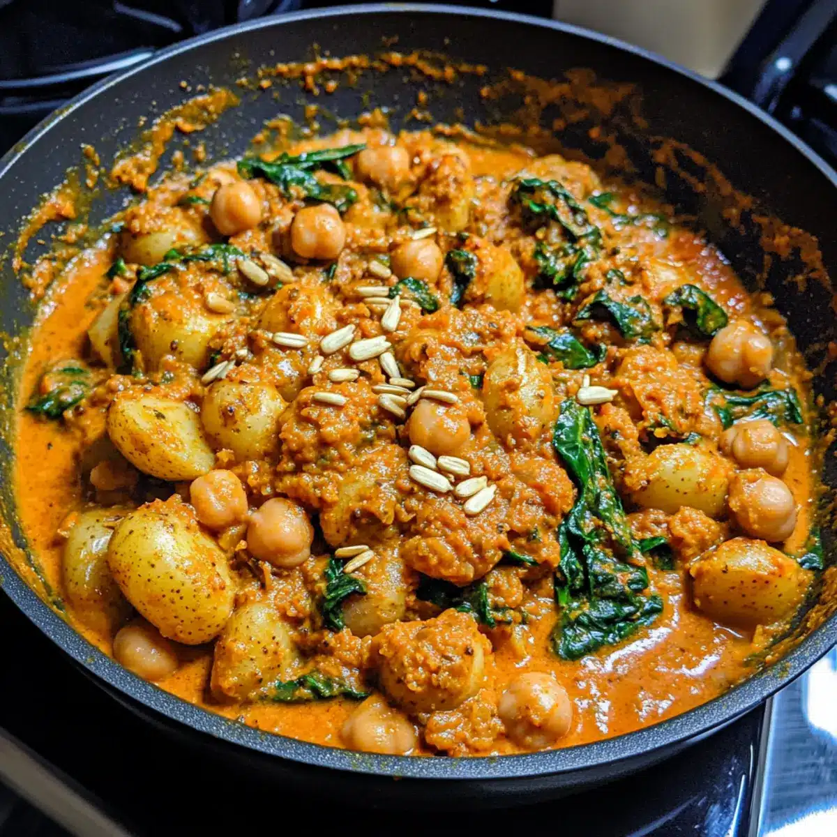 - Finish with Cream and Greens: Pour in vegan cream and add chopped spinach, stirring until wilted. Cook for another 2-3 minutes.