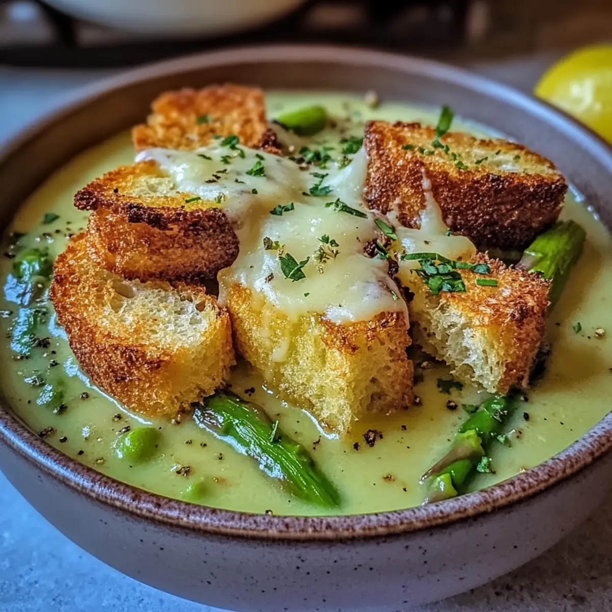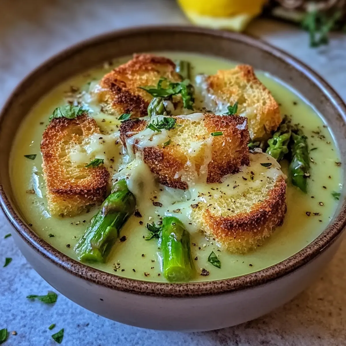 In the heart of spring, as vibrant green stalks push through the earth, there’s nothing quite like immersing yourself in the delightful flavors of the season. This Creamy Spring Asparagus Soup with Zesty Gruyère Croutons transforms fresh asparagus into a silky, comforting dish that feels like a warm embrace on a cool day. Not only is this recipe a quick meal to whip up, but it also celebrates the best of spring produce, making it a fantastic go-to for your dinner table. Pairing that rich creaminess with crunchy, cheesy croutons introduces a fun textural contrast that leaves every spoonful satisfying. As the days get longer and brighter, why not bring a touch of that freshness into your kitchen? What will you pair with your first bowl?