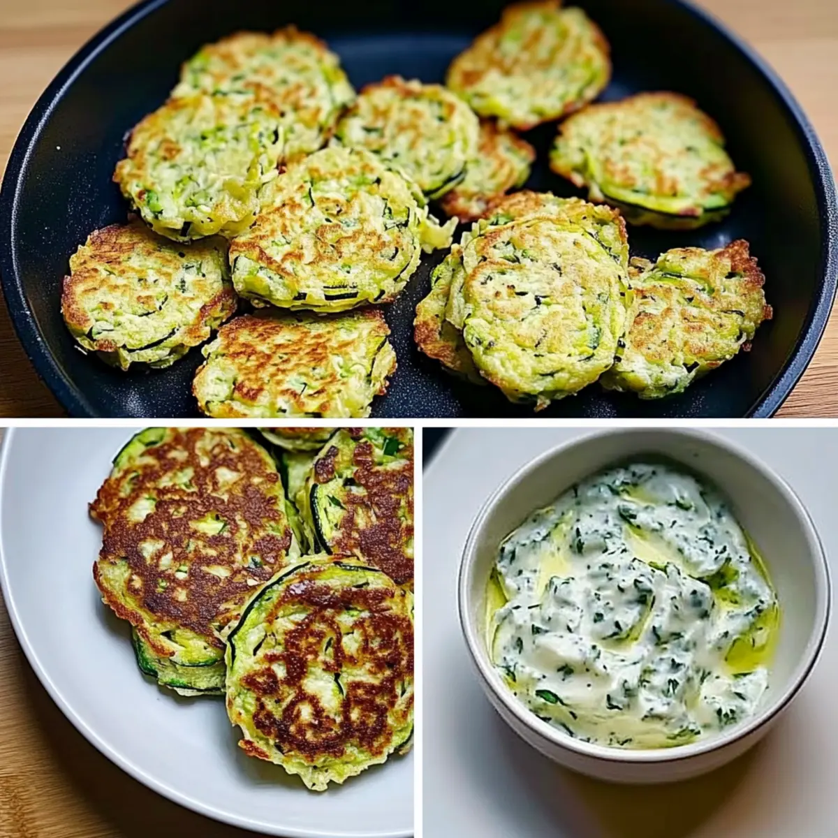 Creamy Yogurt Sauce: A tangy dip made with Greek yogurt and herbs adds a refreshing contrast to the warm fritters.