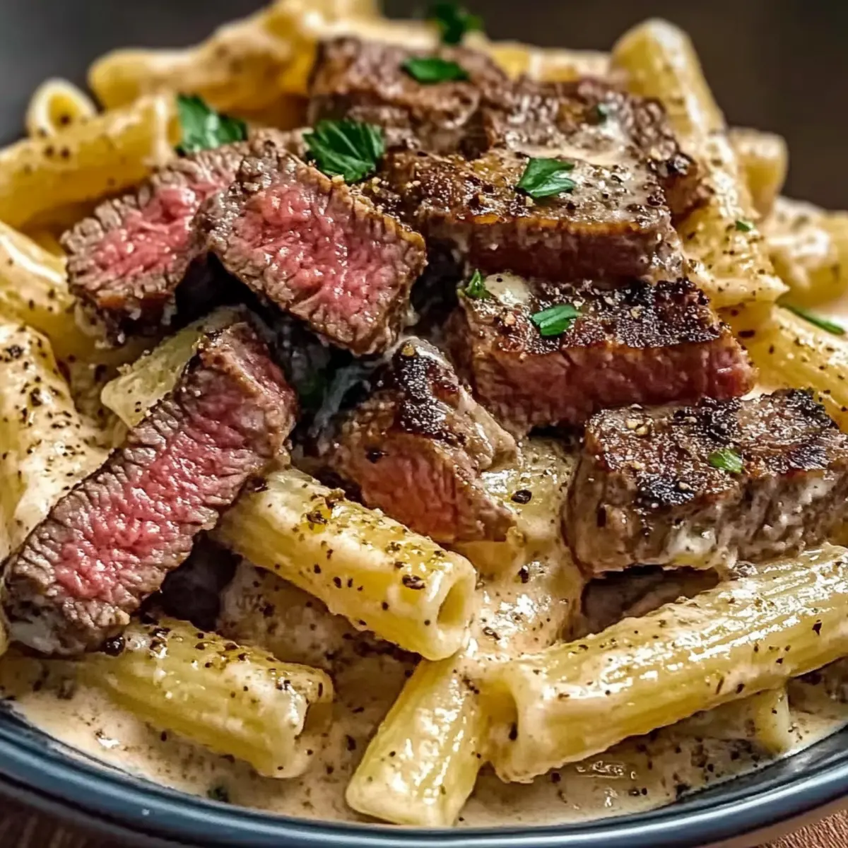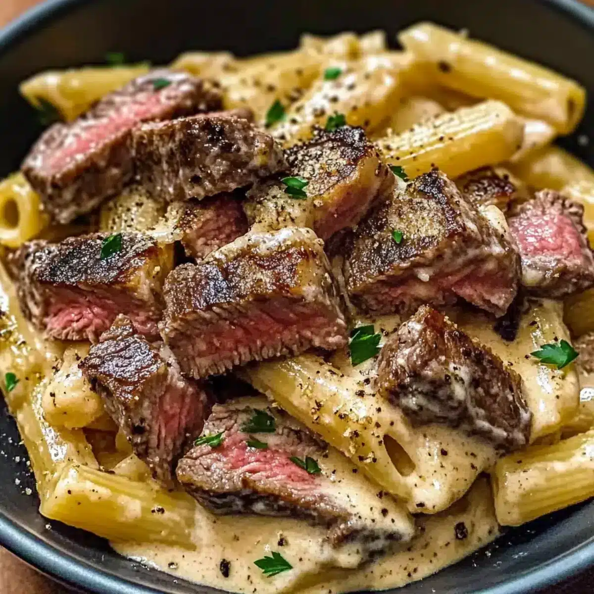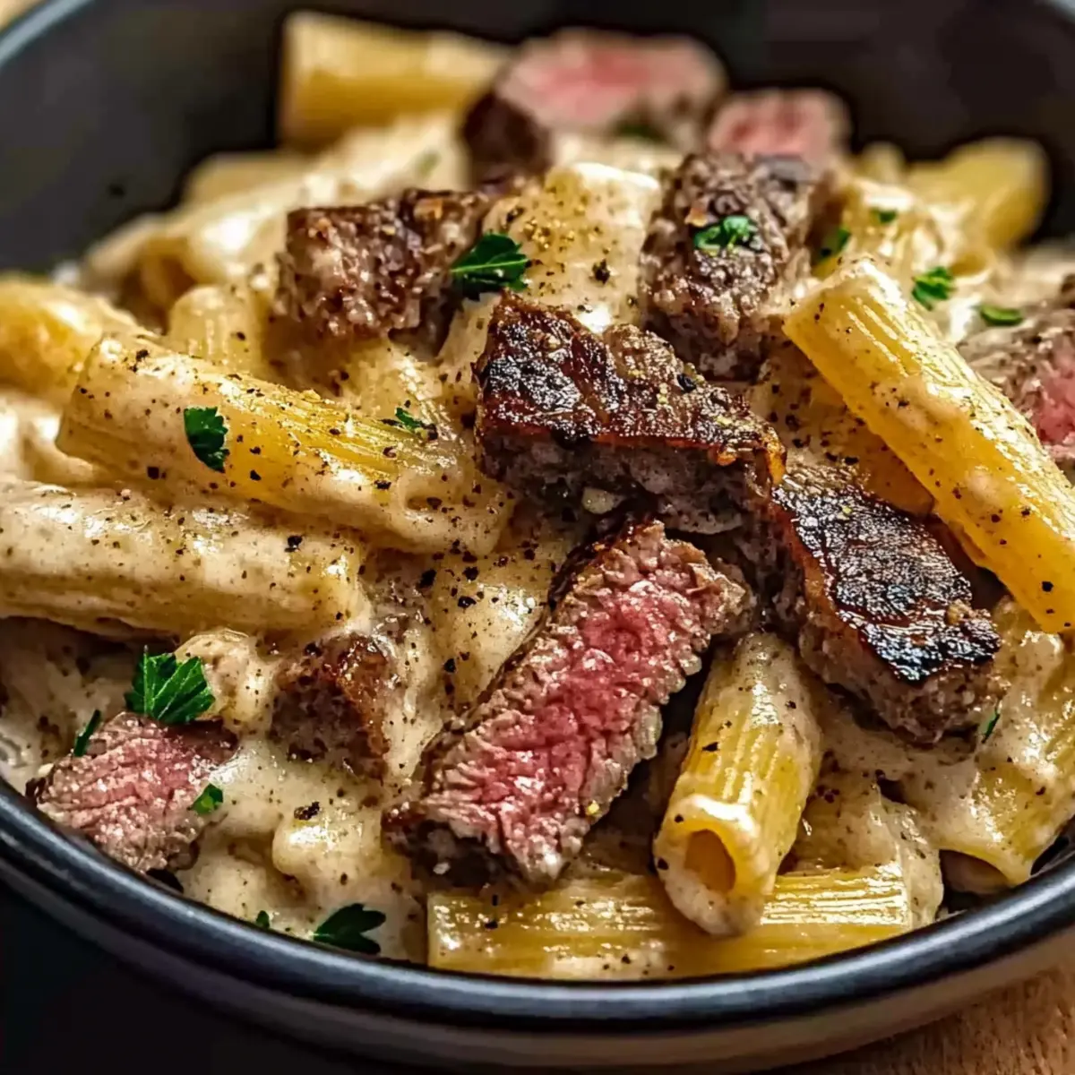 - Combine Pasta and Steak: Fold in cooked pasta and sliced steak, ensuring everything is coated with the sauce.