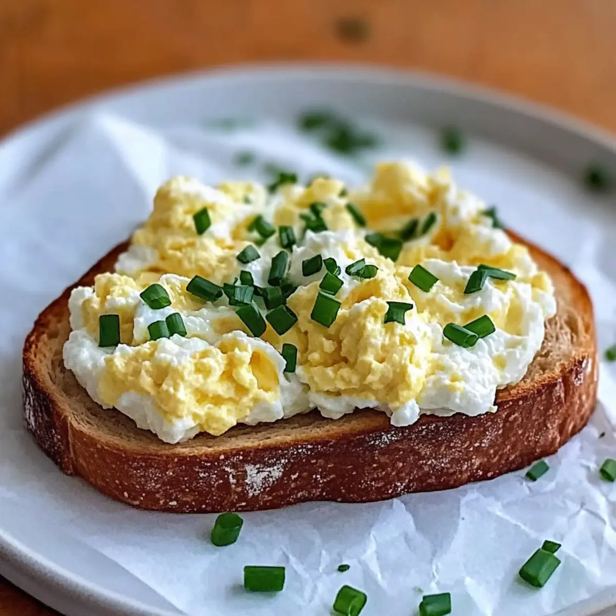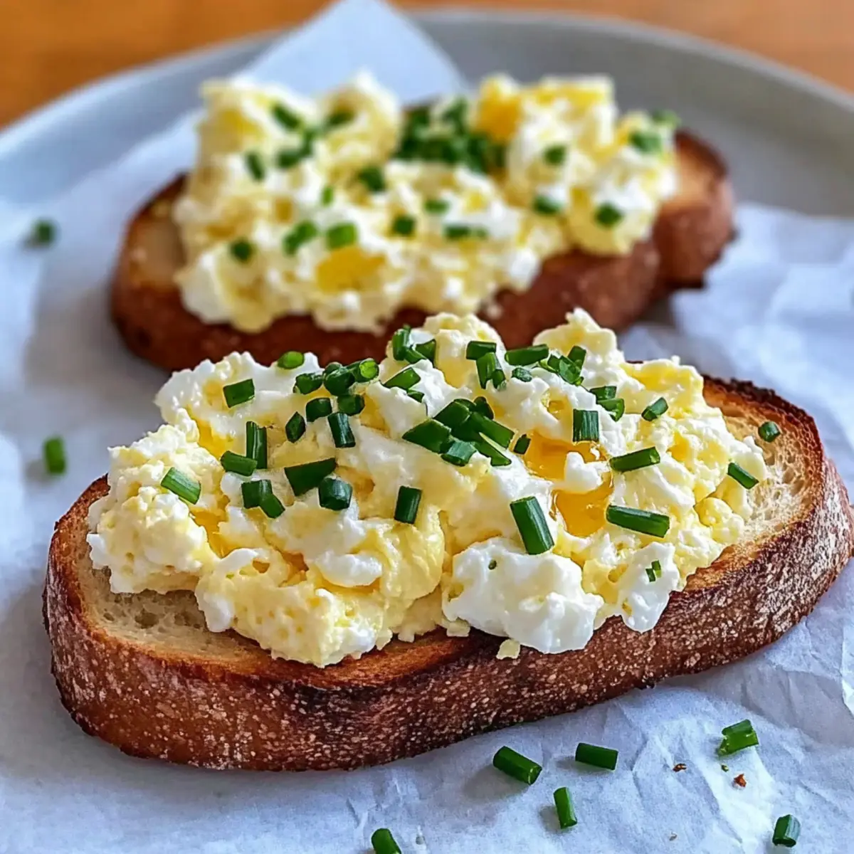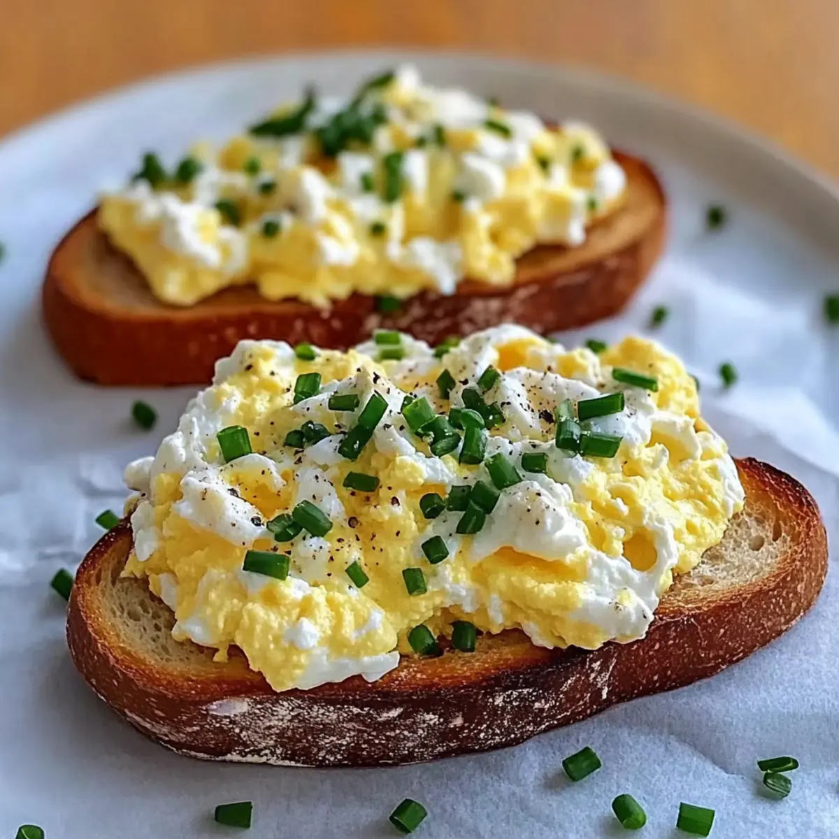 Creamy Texture: The combination of soft scrambled eggs and smooth ricotta creates a luscious topping on crispy sourdough.