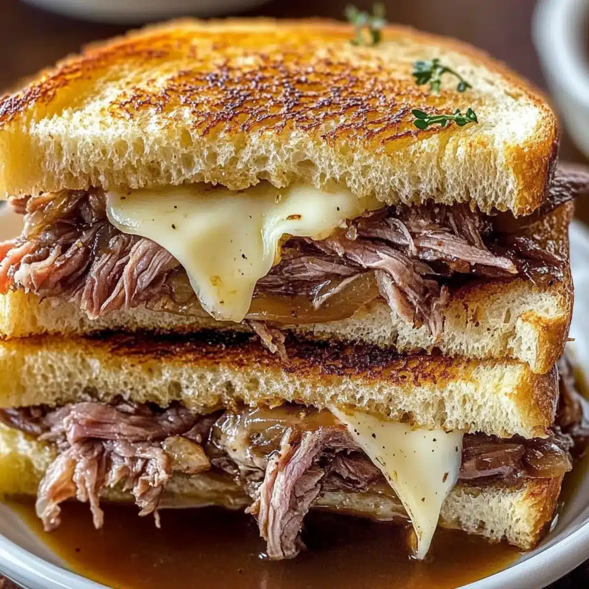 - Vegetarian Twist: For a delightful vegetarian French Dip Grilled Cheese, replace roast beef with roasted portobello mushrooms and use vegetable broth for the au jus.