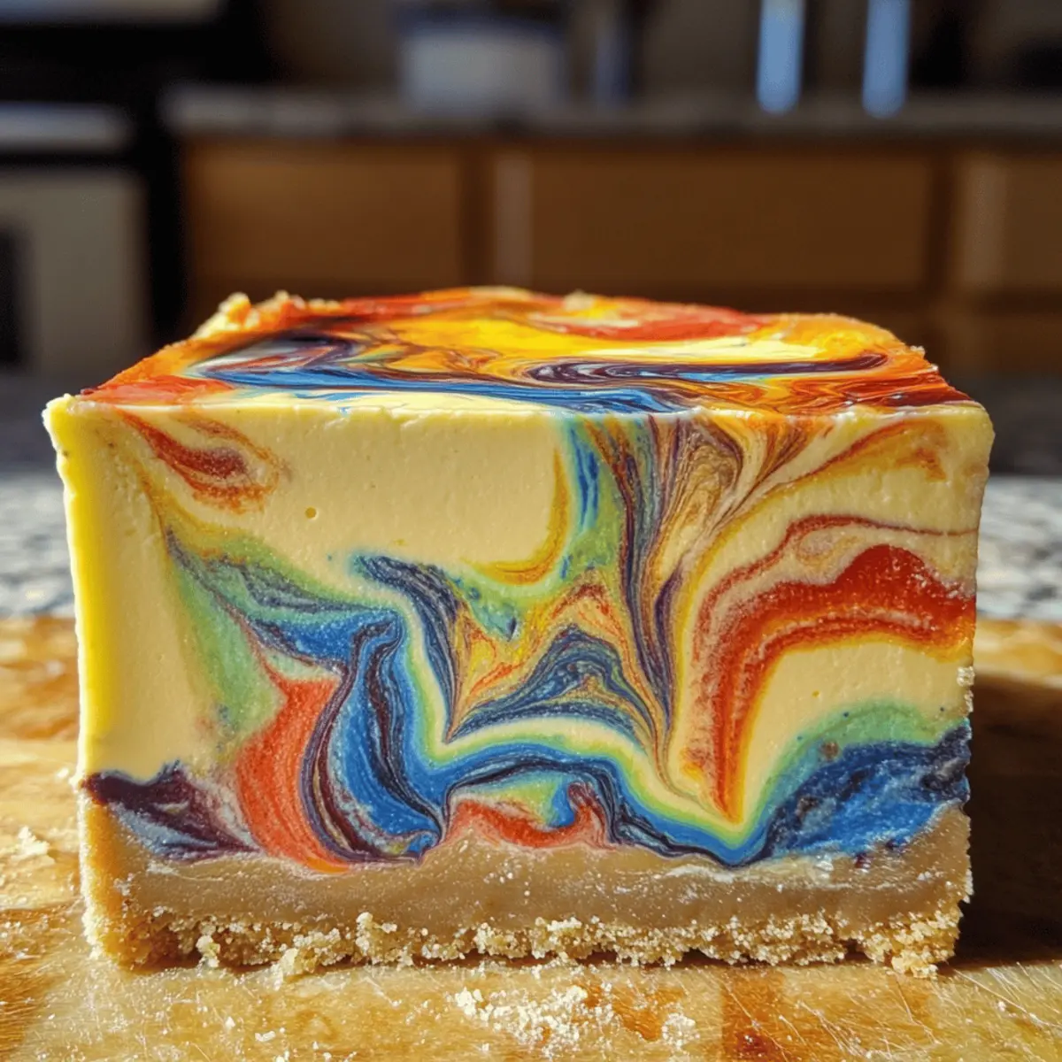 - Pour the smooth cheesecake batter over your cooled crust, creating an even layer. Drizzle the colored mixtures on top of the batter, creating a beautiful marbled effect. Use a toothpick or a knife to gently swirl the colors together, being careful not to overmix. Bake in the preheated oven for about 50-60 minutes until the edges are set but the center has a slight jiggle.