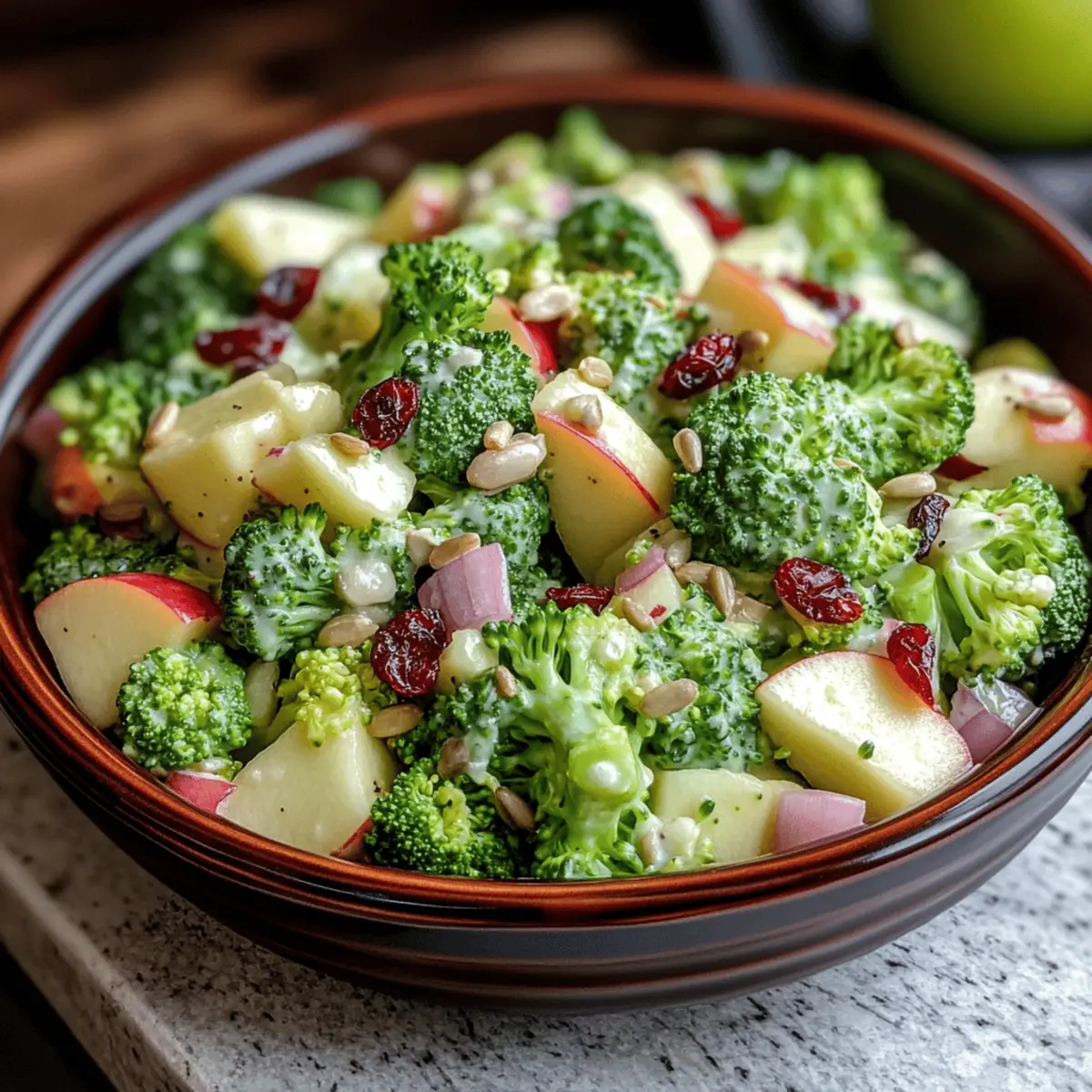 Vibrant Colors: This Honeycrisp Apple Broccoli Salad bursts with fresh, lively colors that will brighten up any meal.