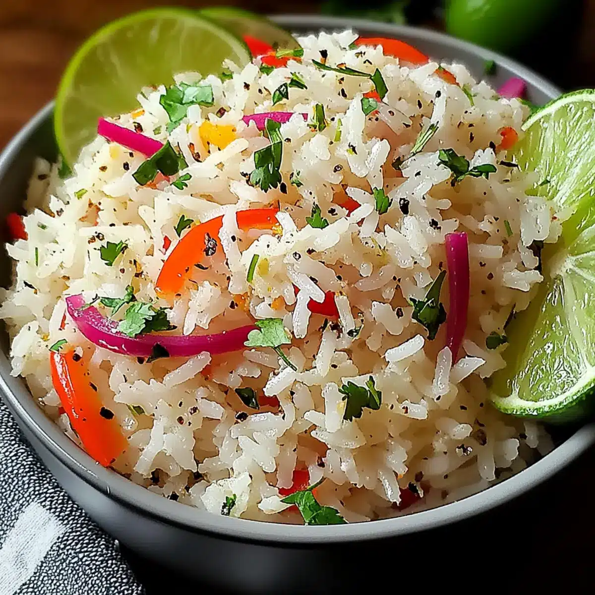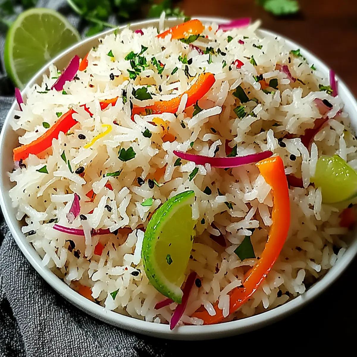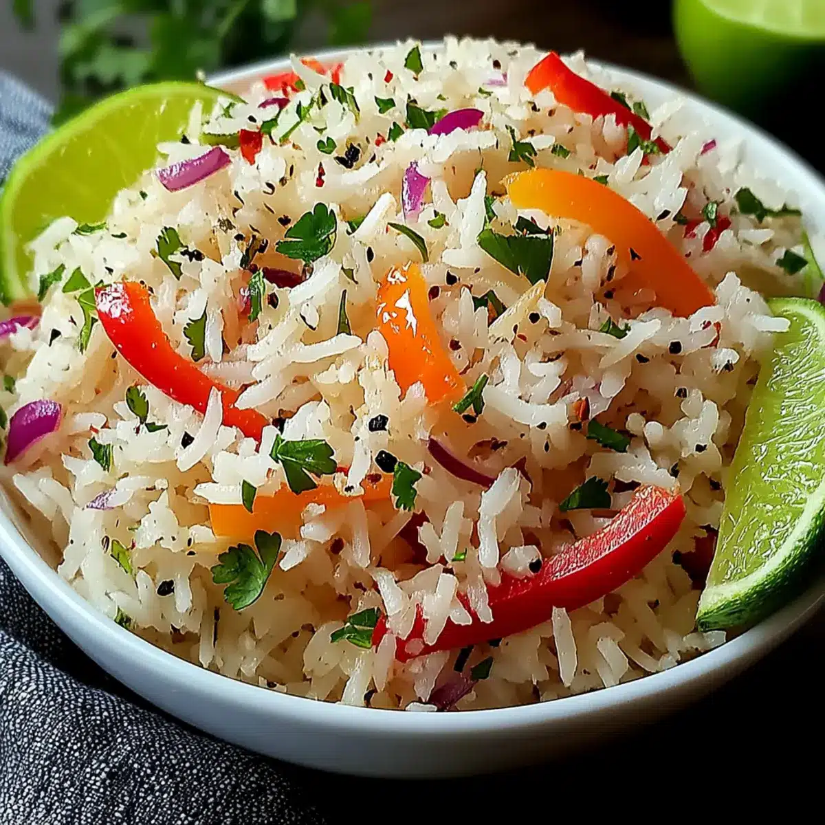 • Lime Wedges – Essential for a zesty finish that enhances the overall flavor of the Island Coconut Pepper Rice.