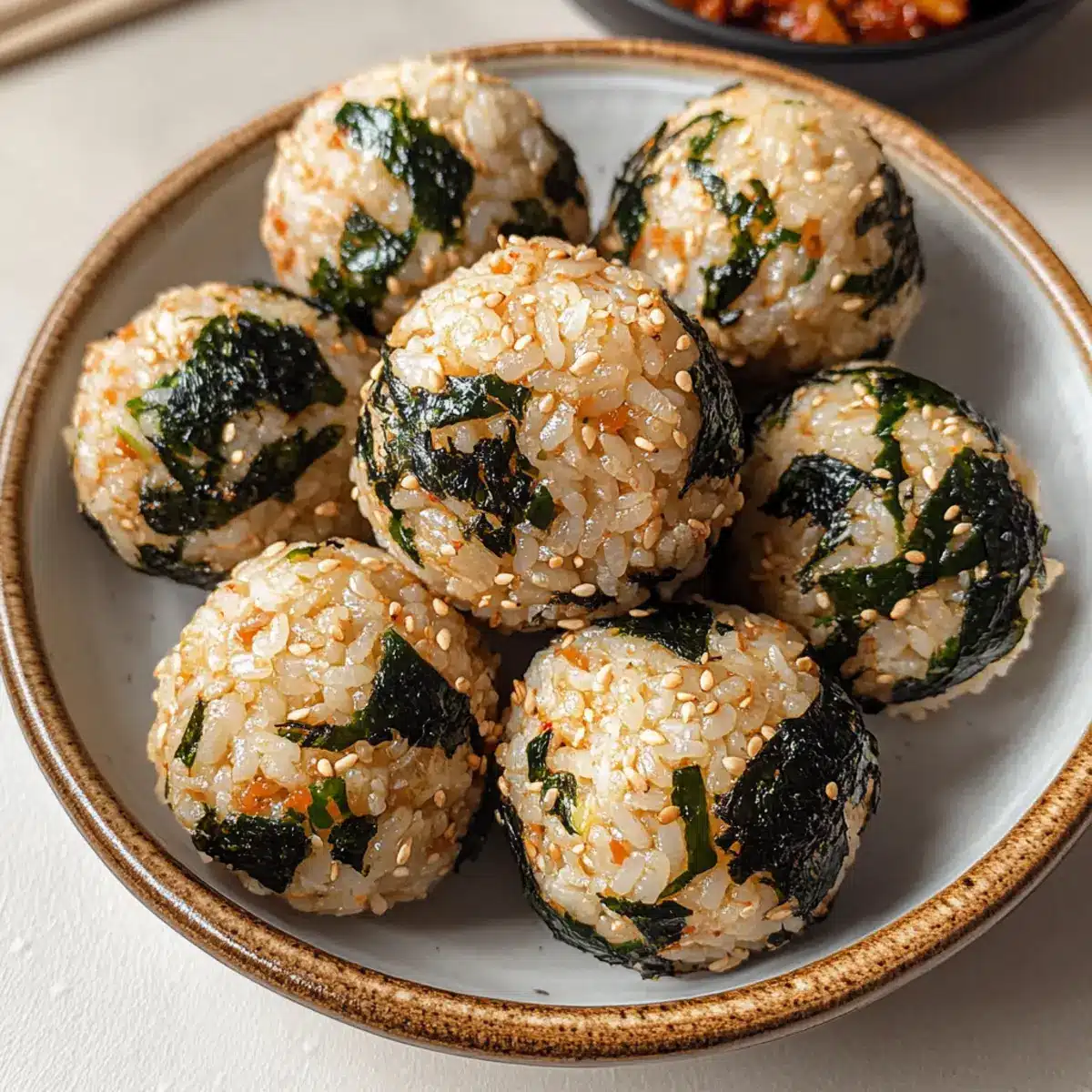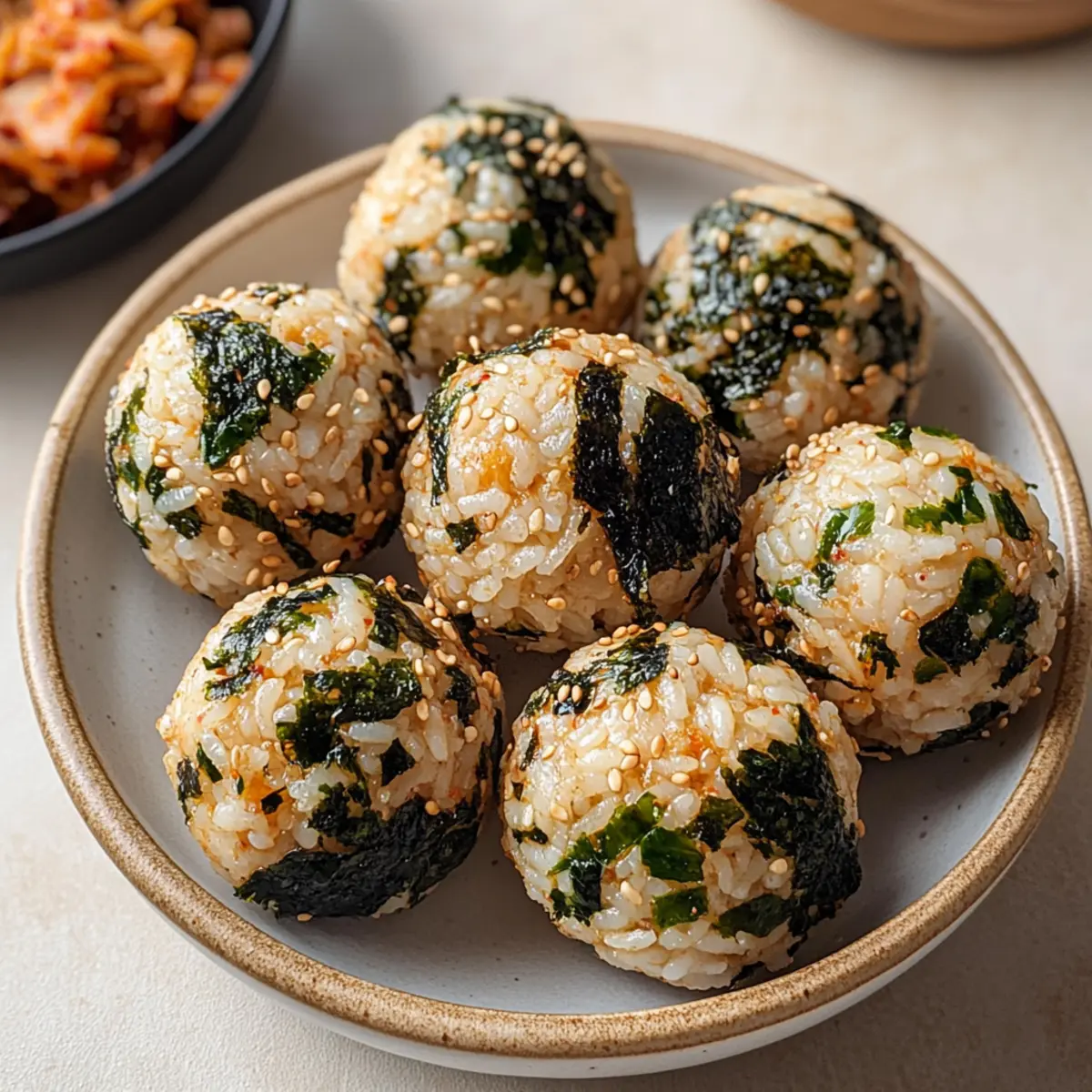 - (Optional) Sprinkle additional sesame seeds or seaweed flakes onto your formed Korean Rice Balls for an extra touch.