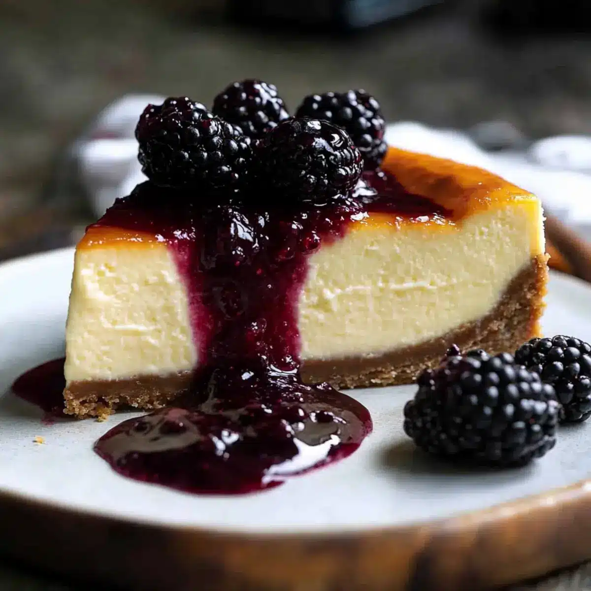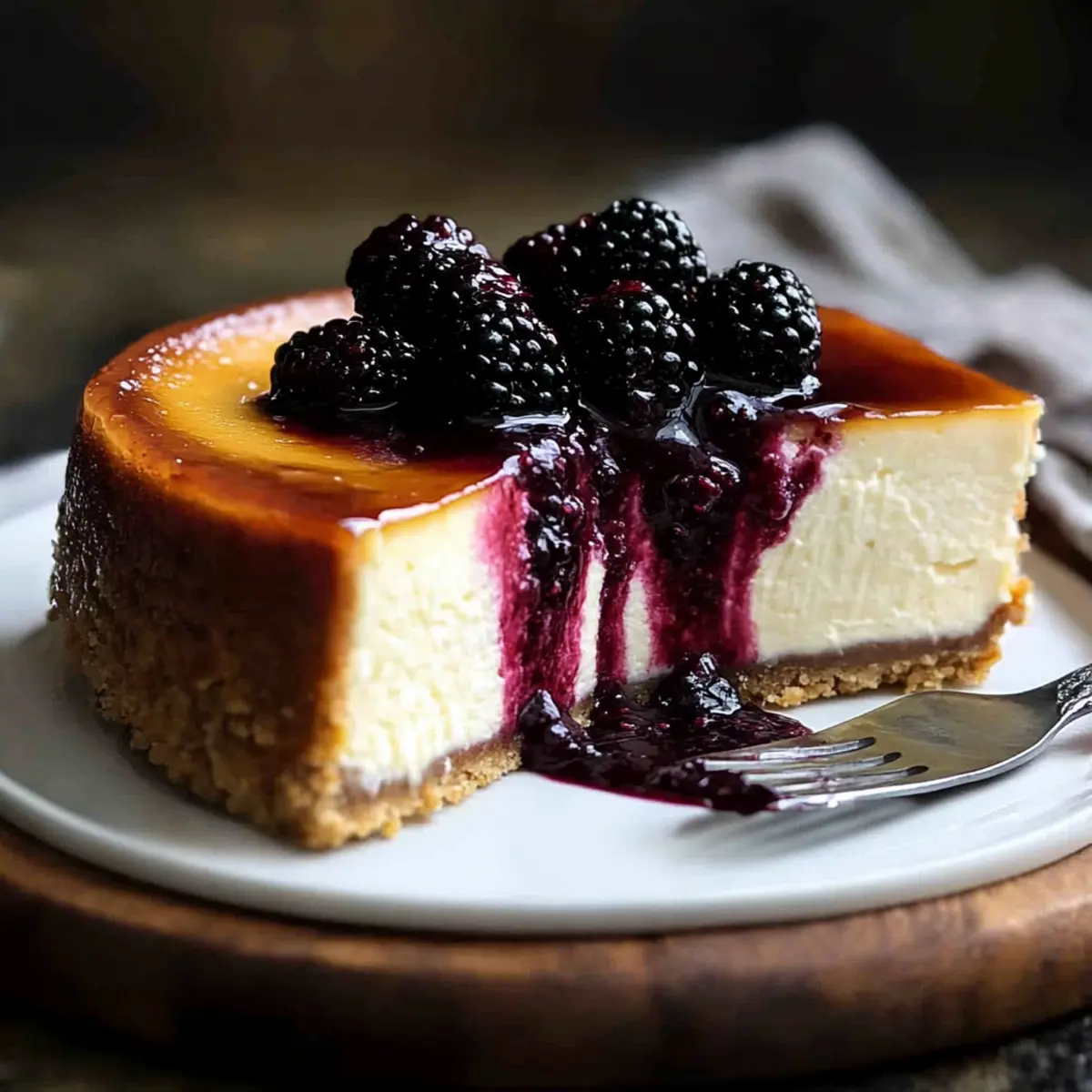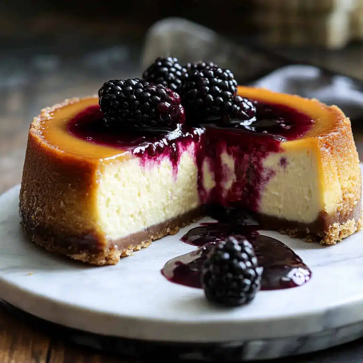 Not a problem! If you notice cracks forming on the surface, understand that this is a common occurrence. To prevent this, try baking in a water bath next time, which maintains moisture in the oven. If a crack does appear, you can cover it with the blackberry sauce when serving; it will beautifully mask any imperfections while adding a burst of flavor!