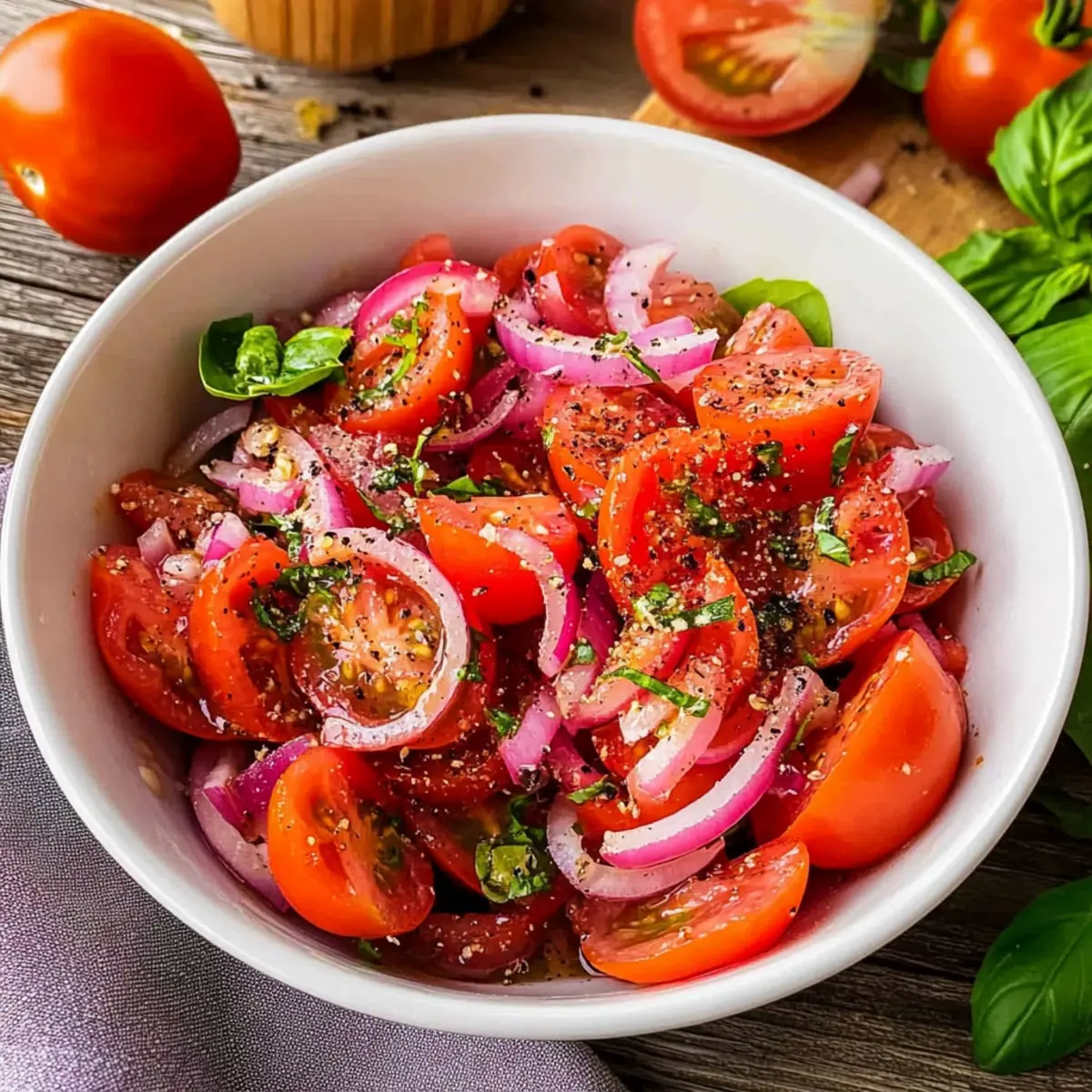 As the sun shines brightly and garden veggies begin to ripen, I can’t help but recall a magical summer evening, where laughter and fresh flavors danced in the air. Enter my Marinated Tomato Onion Salad—a vibrant blend that captures the essence of sunny days. This refreshing summer salad pairs juicy tomatoes with crisp red onions, making it the perfect make-ahead companion for barbecues or picnics. Whipping it up is a breeze, giving you more time to bask in those lazy summer rays while savoring its delightful taste. Trust me, your guests will be so entranced by the medley of flavors, they’ll forget all about fast food. Curious about how to bring this delightful dish to life? Let’s dive into the recipe!