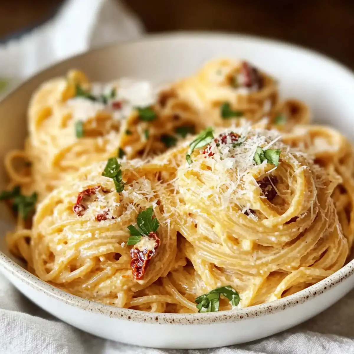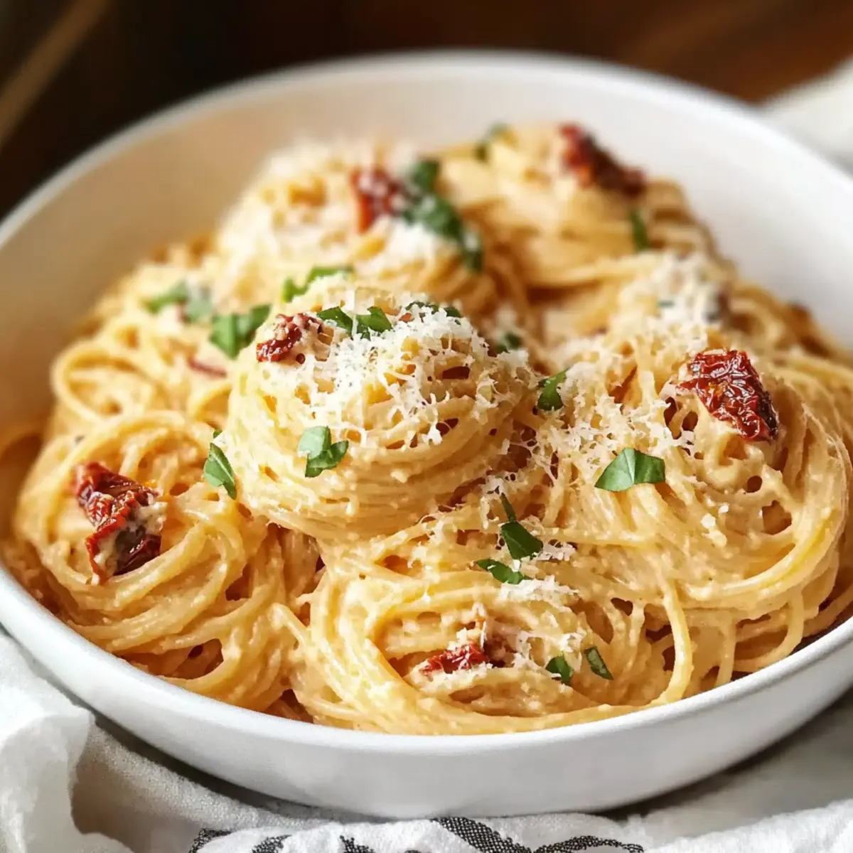 - Combine Ingredients: Stir in Parmesan and sun-dried tomato paste, season, and simmer for 5-7 minutes until thickened.
