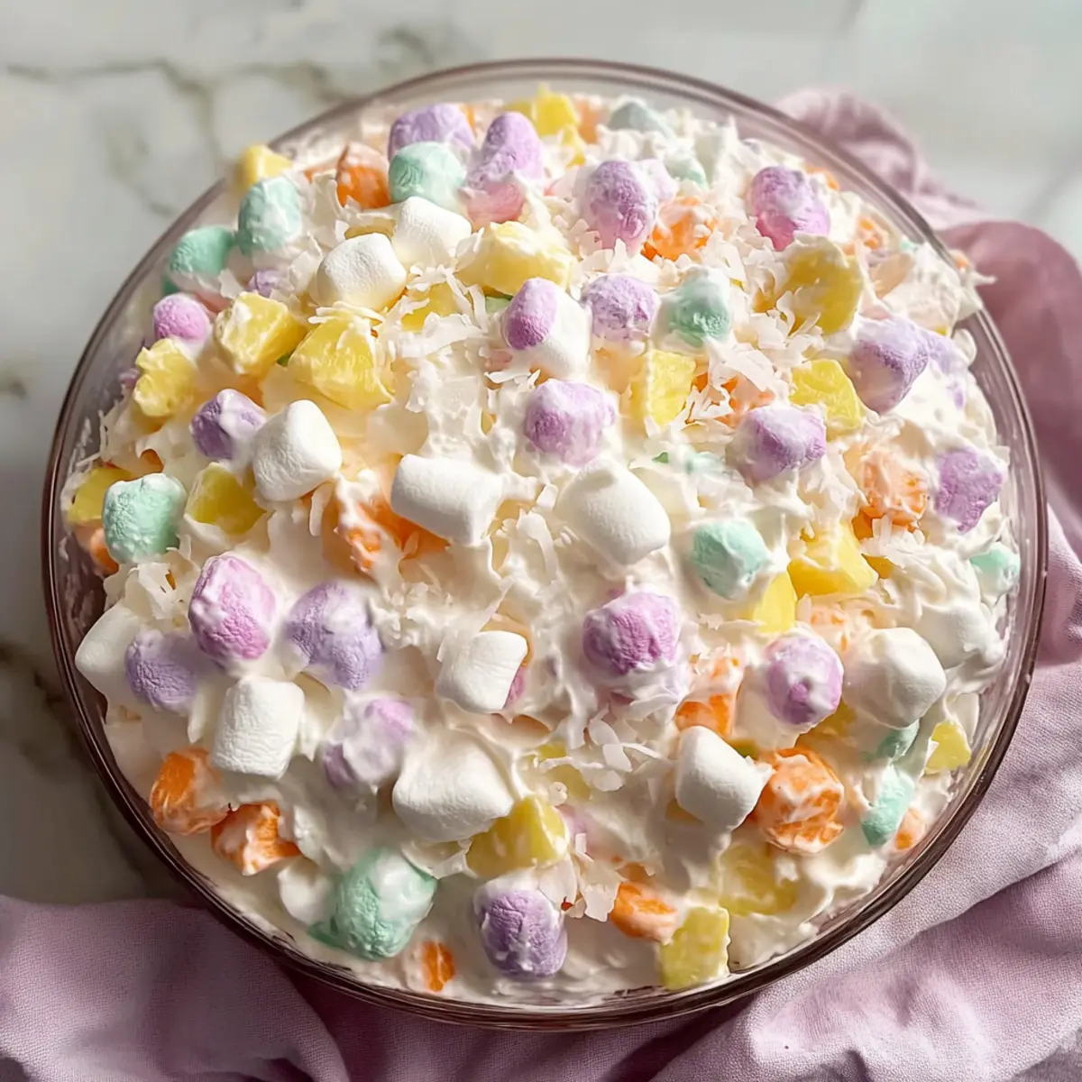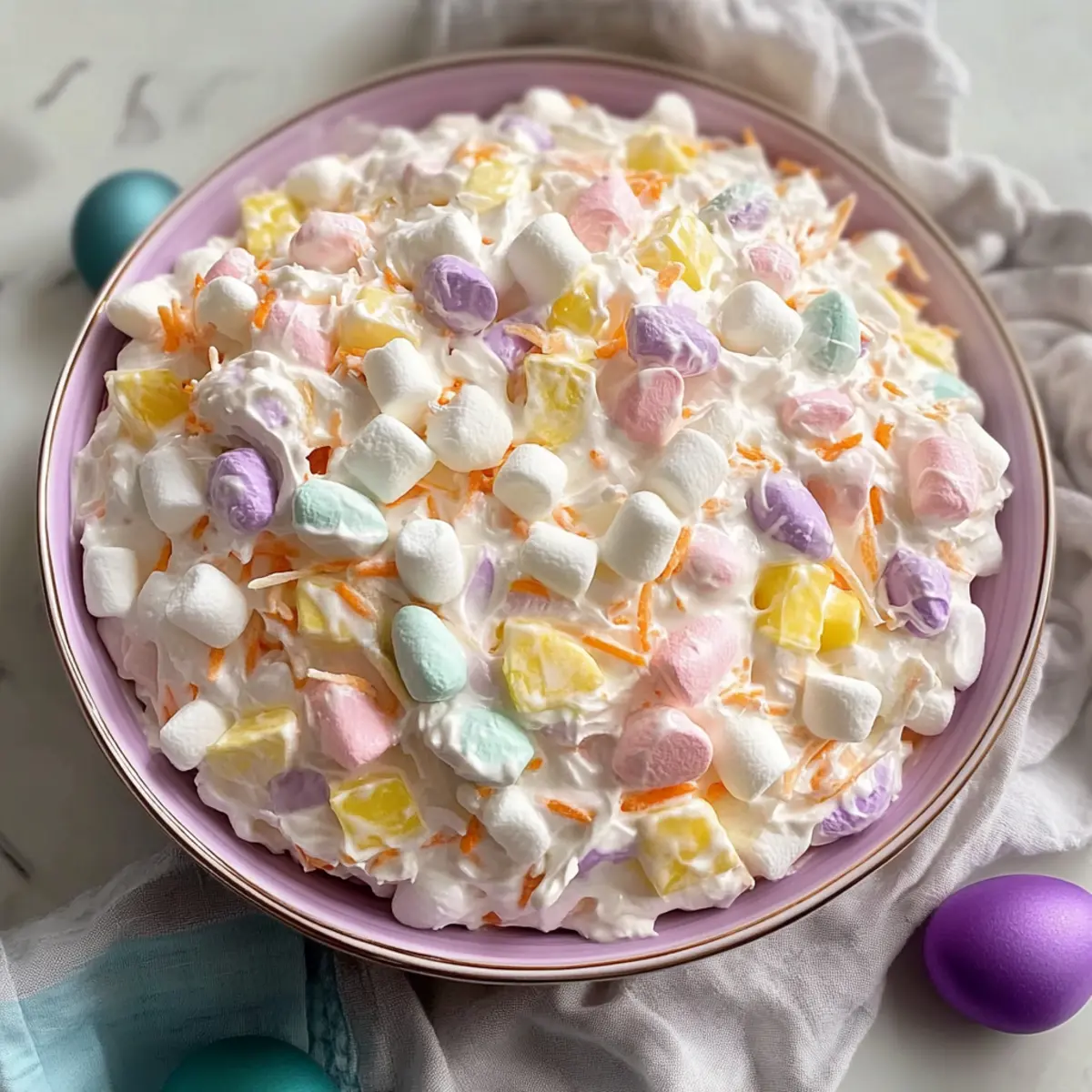 Bringing this Marshmallow Easter Fluff Salad to the table ensures not only a spectacular visual but also a delightful taste that keeps your guests coming back for seconds!