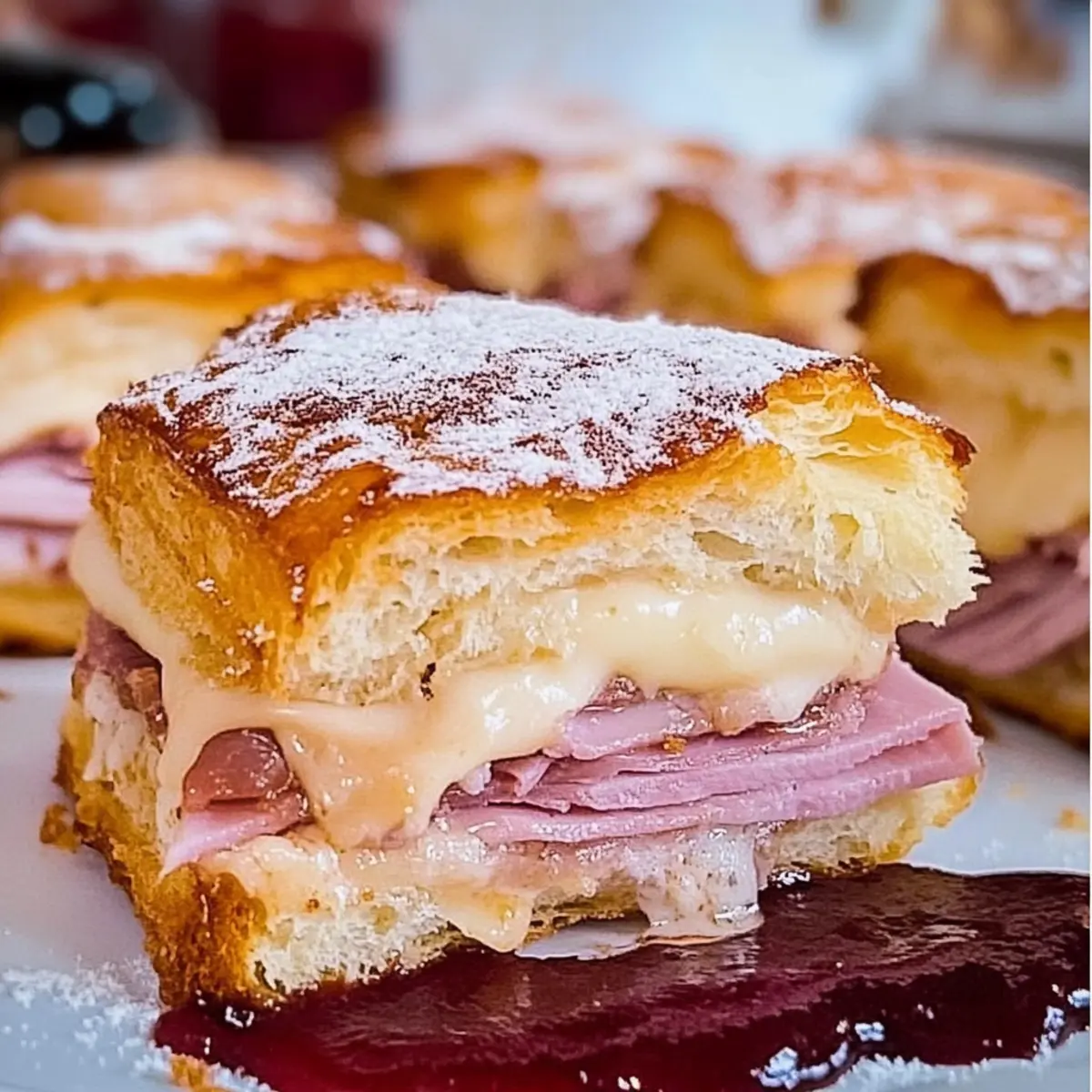 Irresistible Flavor: Each bite is a perfect fusion of savory ham, turkey, and melty Gruyère cheese, elevated by a buttery Dijon glaze.