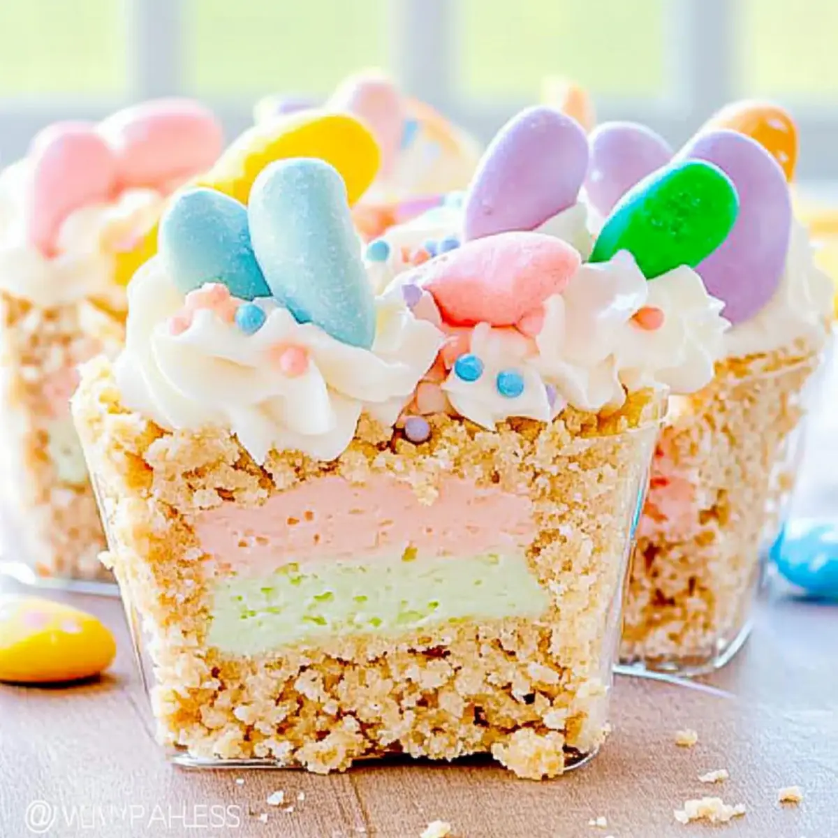 • Pastel Candy Eggs – These colorful treats not only add whimsy but also a chocolate crunch, elevating the dessert’s festive appearance.