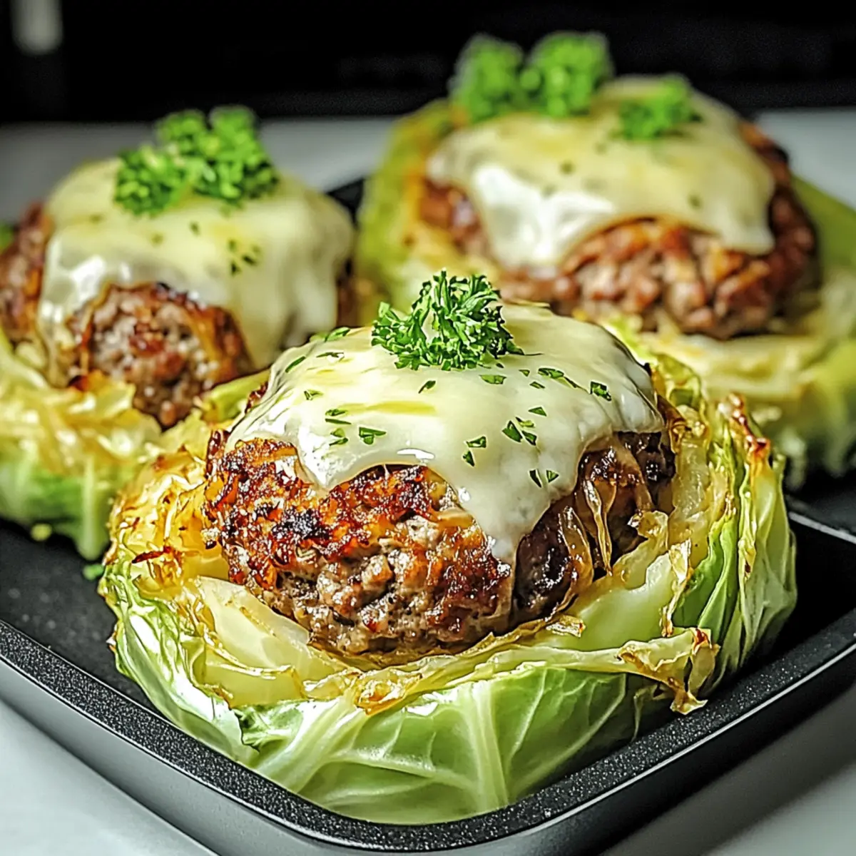 These Oven-Baked Cabbage Burgers are perfect for meal prep enthusiasts, allowing you to save time on busy weeknights! You can prepare the cabbage rounds by slicing them and brushing them with olive oil up to 24 hours in advance, storing them in the refrigerator to maintain their crunch. Additionally, you can mix the meat ingredients and shape the patties up to 3 days ahead; just refrigerate them in an airtight container. When you’re ready to serve, simply assemble the patties on the cabbage rounds and bake as directed, broiling with cheese for that melty finish. This way, you’ll enjoy delicious and hassle-free homemade burgers with minimal effort!
