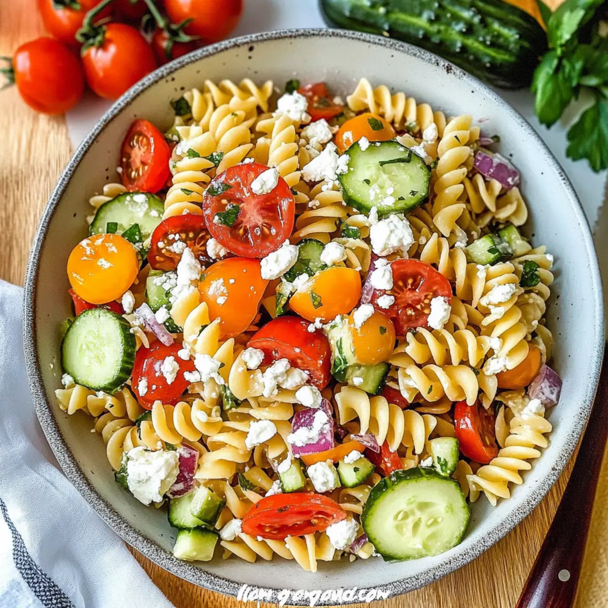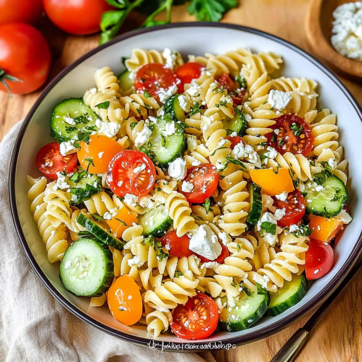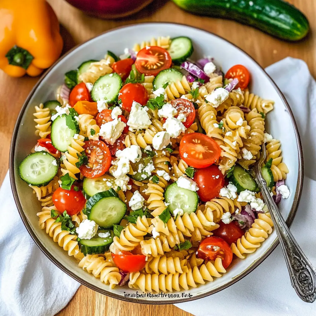 Delicious Pasta Salad Recipe: Fresh Veggies & Feta Goodness
