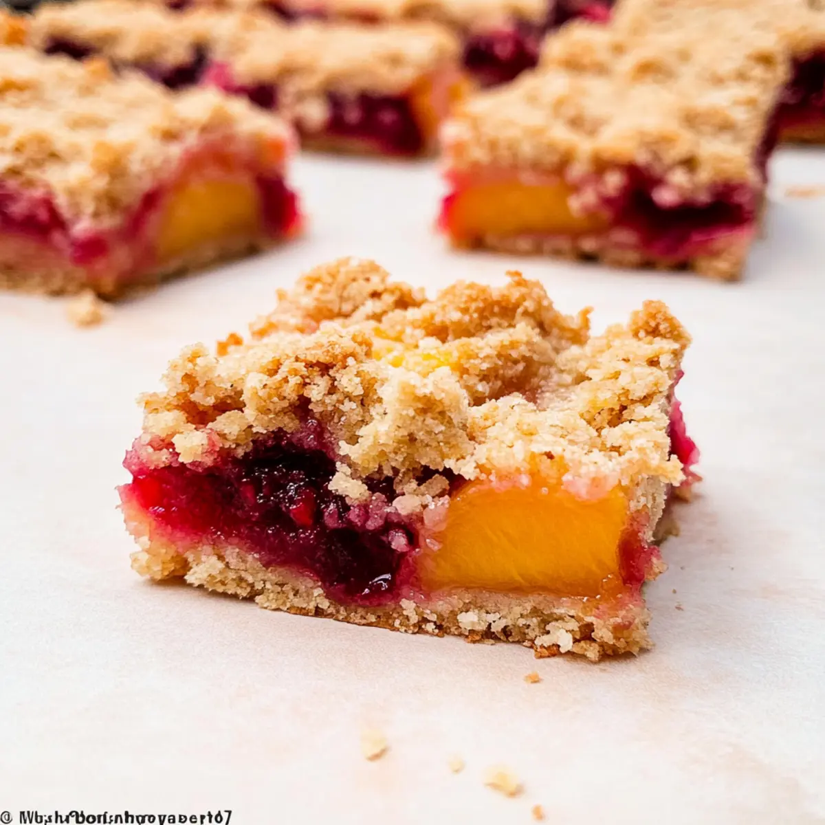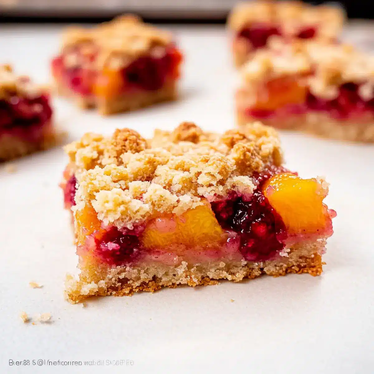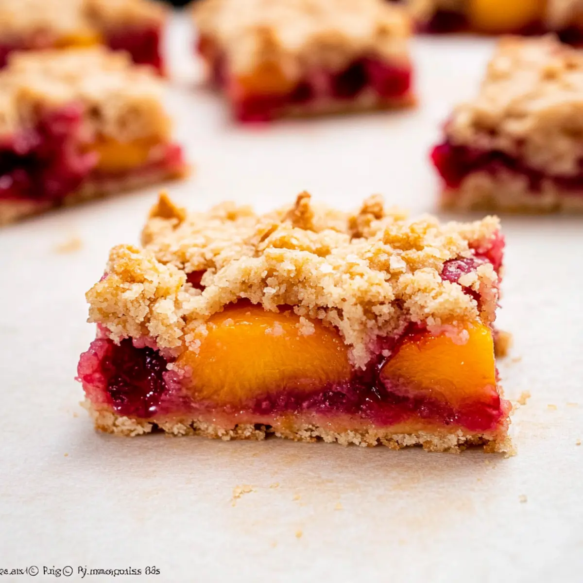 Avoid Soggy Bars: Be cautious not to add excess liquid from the fruit filling. Pat the peaches and raspberries dry to maintain the right consistency.