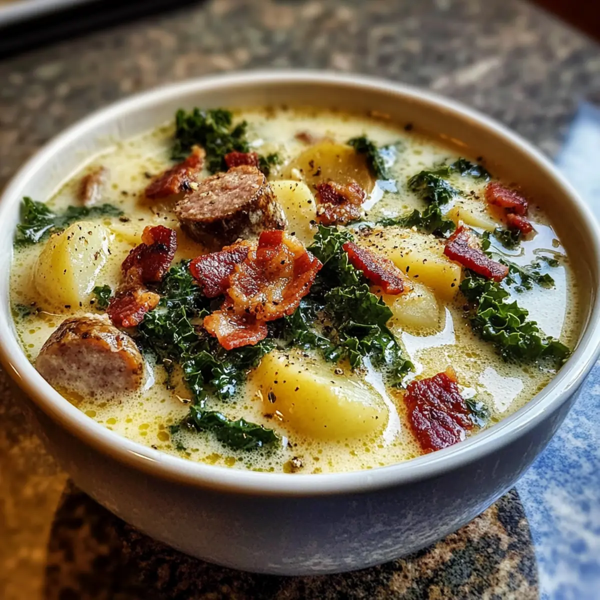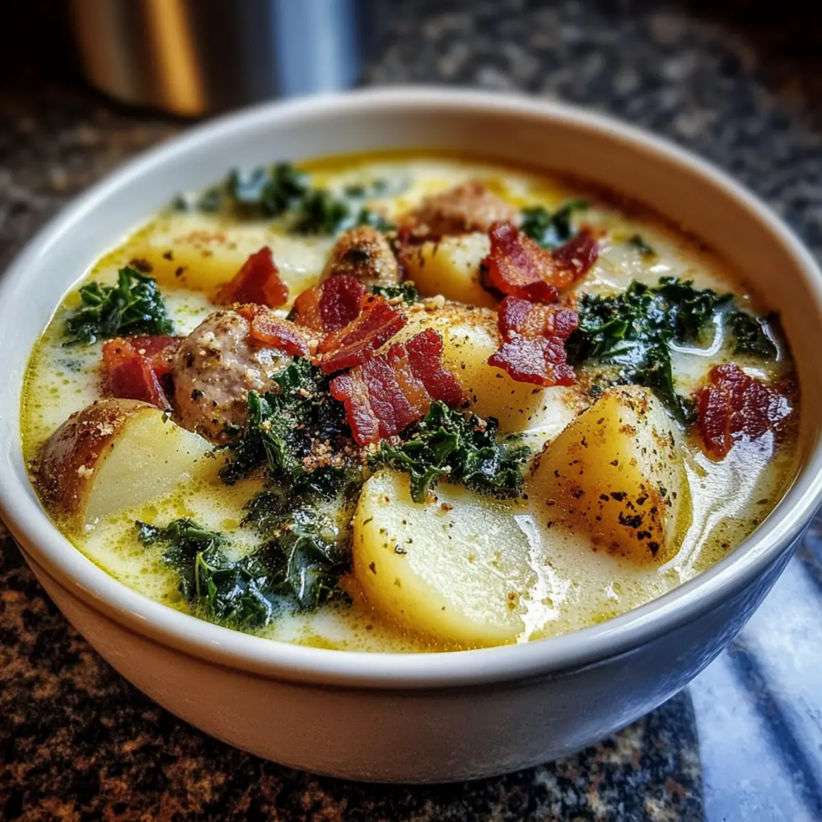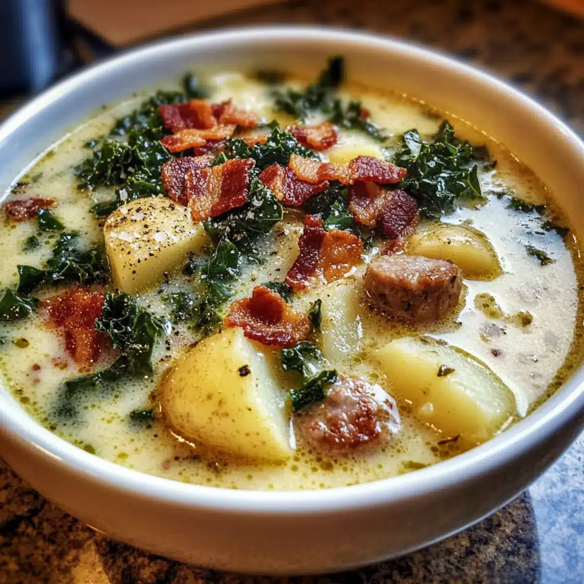 Heartwarming: This Zuppa Toscana Soup envelops you in a warm embrace, combining creamy textures and vibrant flavors that evoke nostalgia.