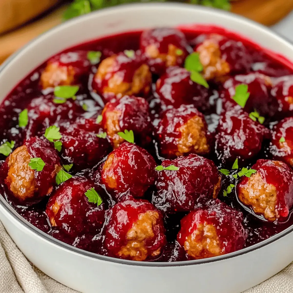 Amid the hustle and bustle of the holiday season, I found a gem that transforms gatherings into memorable feasts: Quick Cranberry Meatballs. These little bites of joy come together in just 35-45 minutes, making them a delightful time-saver amidst the festive chaos. Picture a juicy meatball enveloped in a tart and sweet cranberry sauce, creating a perfect harmony of flavors that will have your guests reaching for seconds. Not only are they incredibly easy to whip up, but they also double as a crowd-pleaser, disappearing faster than you can say “holiday cheer.” Ready to impress your friends and family this season? Let’s dive into this simple yet festive recipe that will elevate your holiday spread and become a beloved tradition. What’s your favorite way to enjoy meatballs?