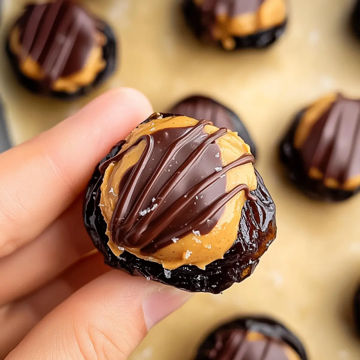 Using a spoon or a piping bag, drizzle the melted chocolate over each date, covering the peanut butter layer generously. This glossy coating not only adds a delightful sweetness but also creates an inviting presentation. Allow your creativity to shine—take your time to ensure each date looks appealing!