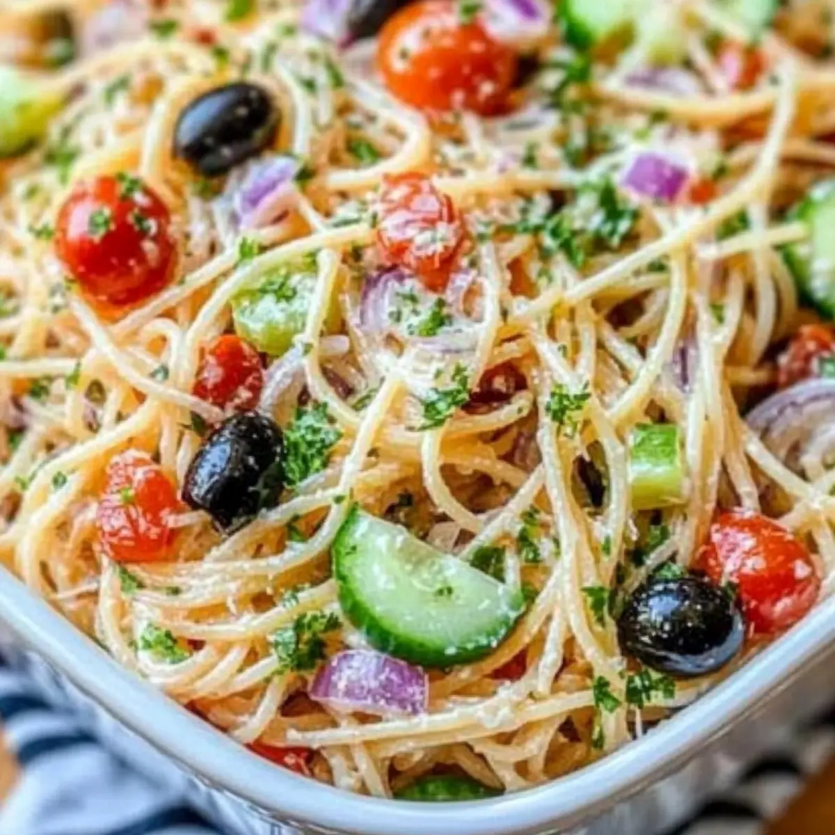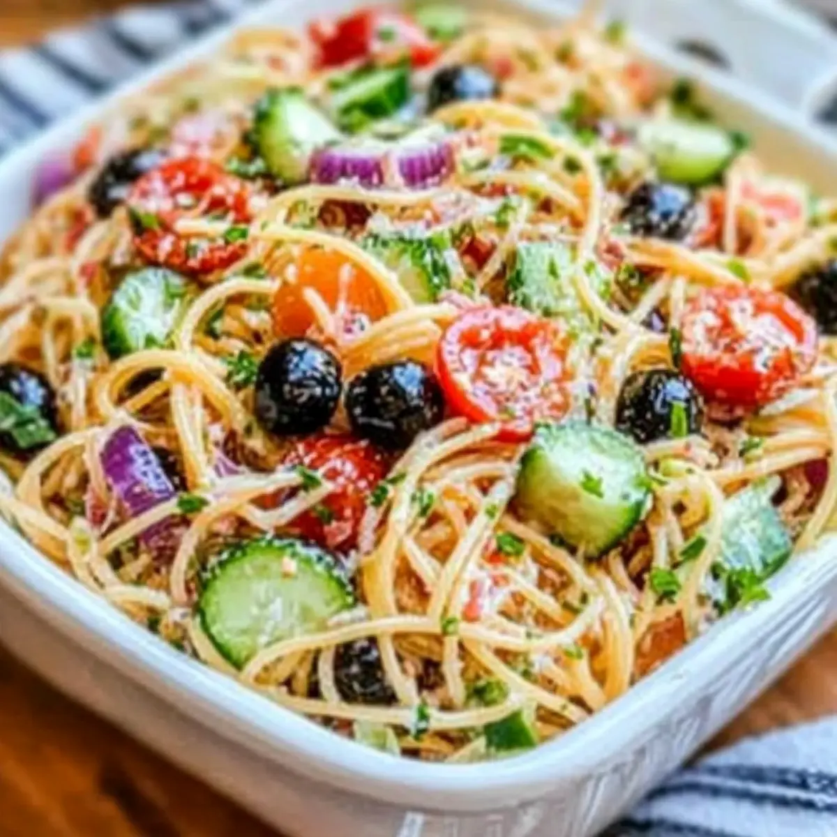 For the best flavor, refrigerate the Spaghetti Salad for at least one hour before serving. This allows the flavors to meld beautifully. If you’re short on time, you can serve it immediately at room temperature, but chilling enhances the taste and makes it even more refreshing!