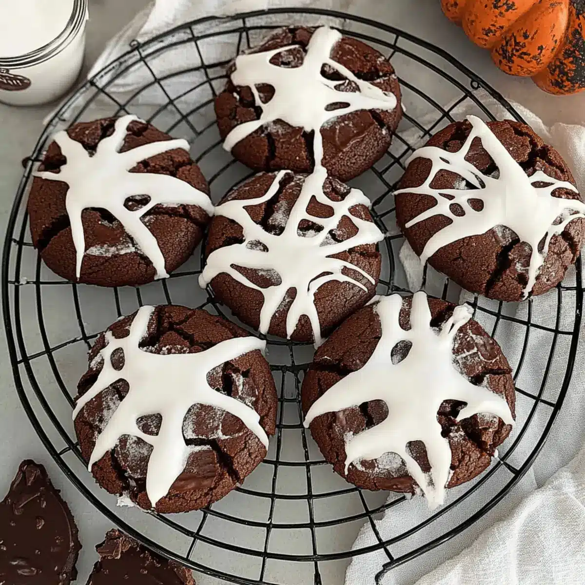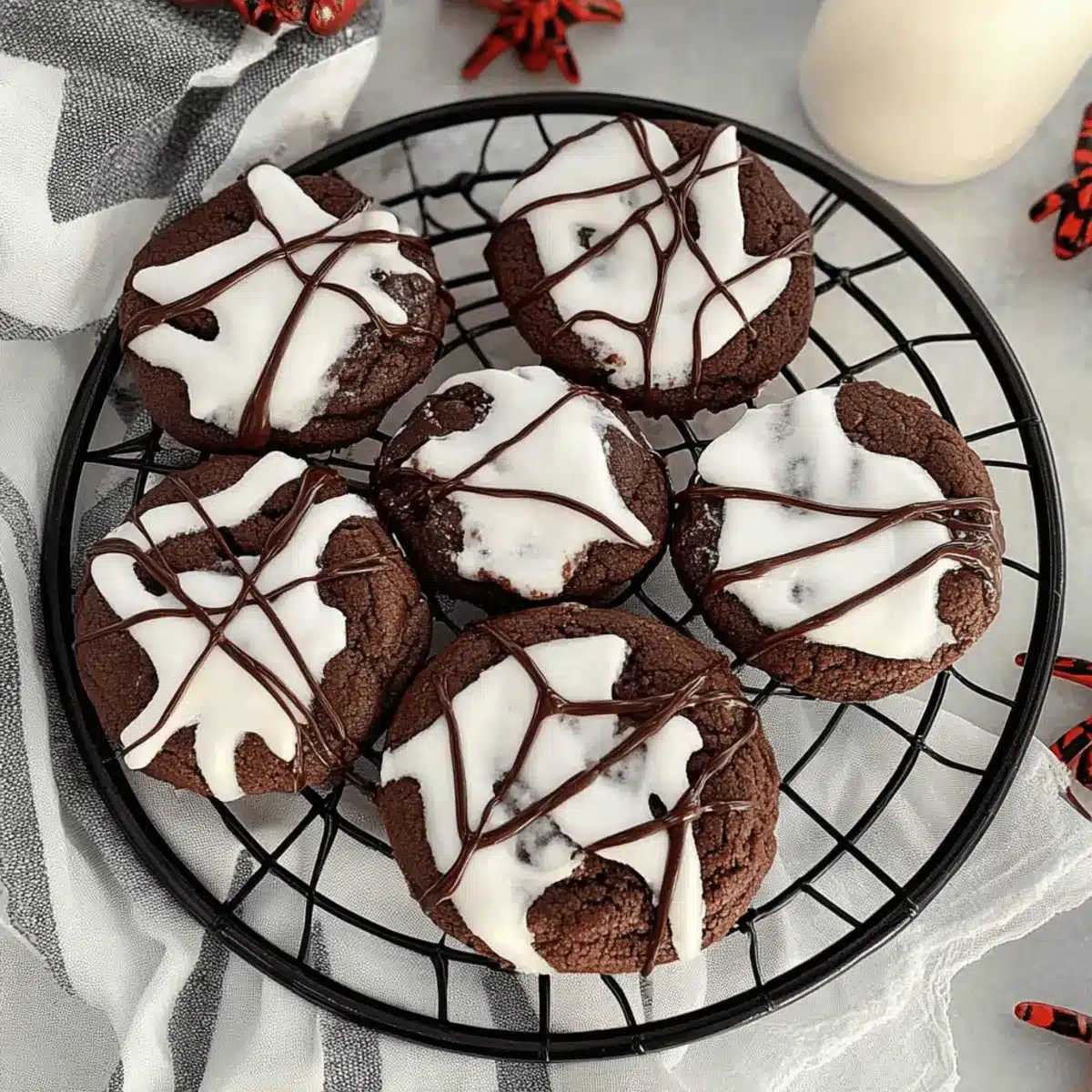 Bake the Spider Web Cookies in your preheated oven for 12 minutes, watching for them to look slightly underbaked with soft centers. Once they’re done, remove them from the oven and allow them to cool on the baking sheet for 3–5 minutes. Then, transfer the cookies to a wire rack to cool completely and maintain that delightful chewy texture.