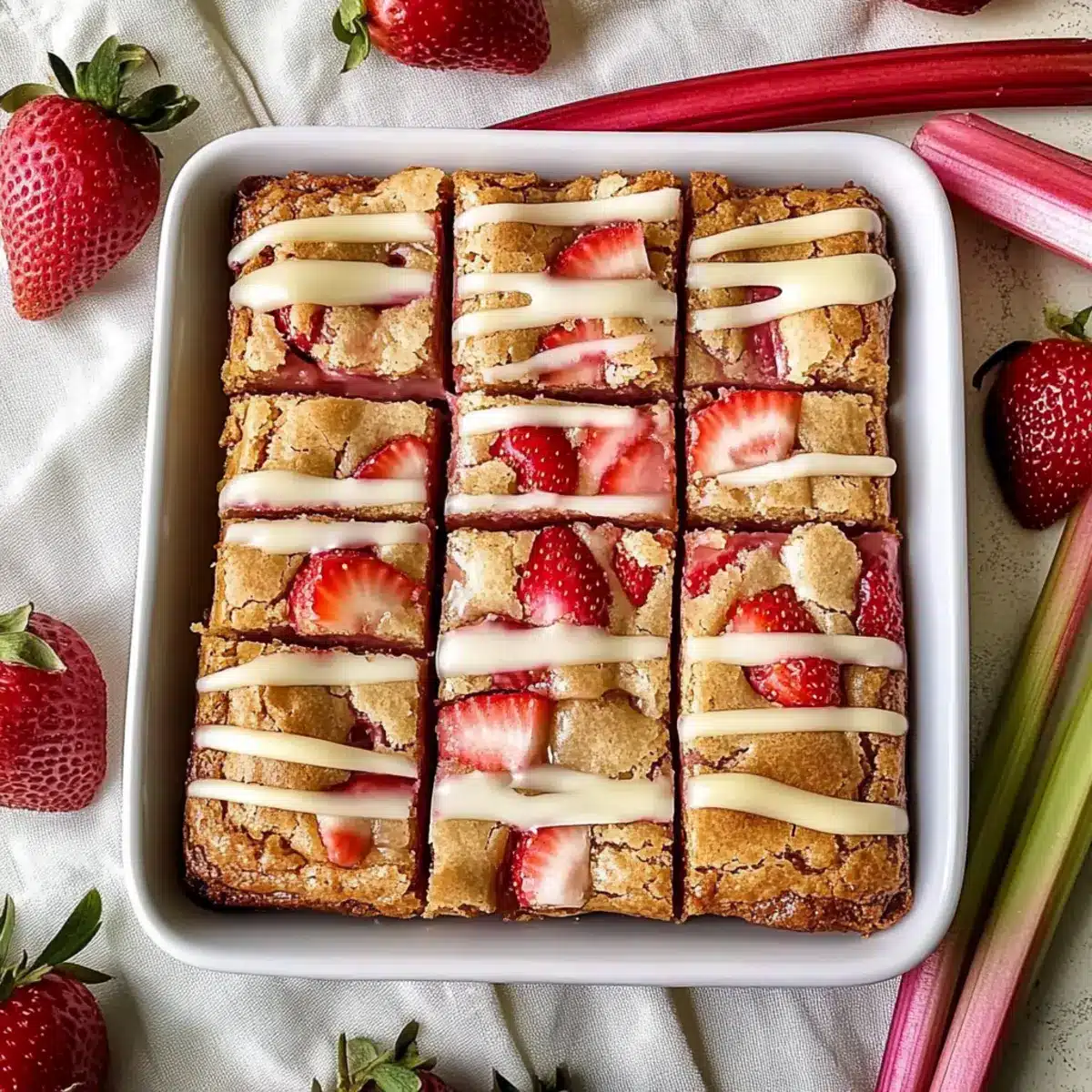Uniquely Delicious: These blondies combine the sweet taste of strawberries with the tartness of rhubarb, creating a flavor explosion that’s perfect for spring.
