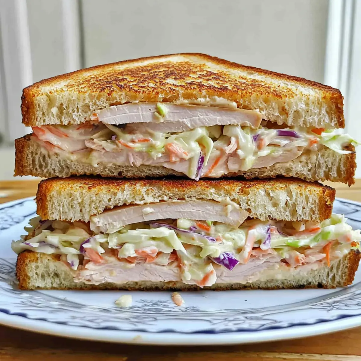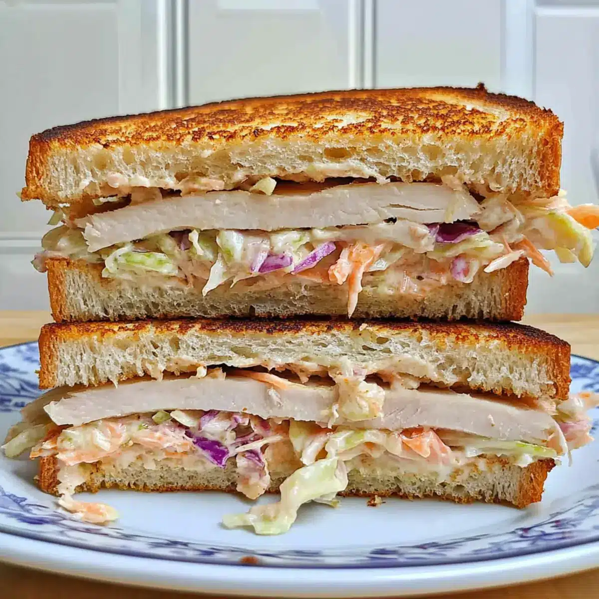 - Assemble the sandwich by layering turkey, coleslaw, and optional dressing on one slice.