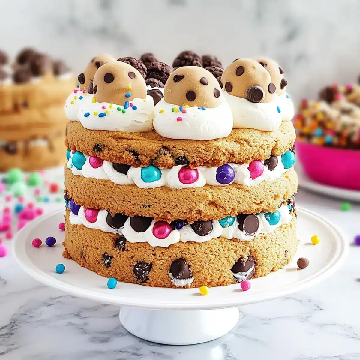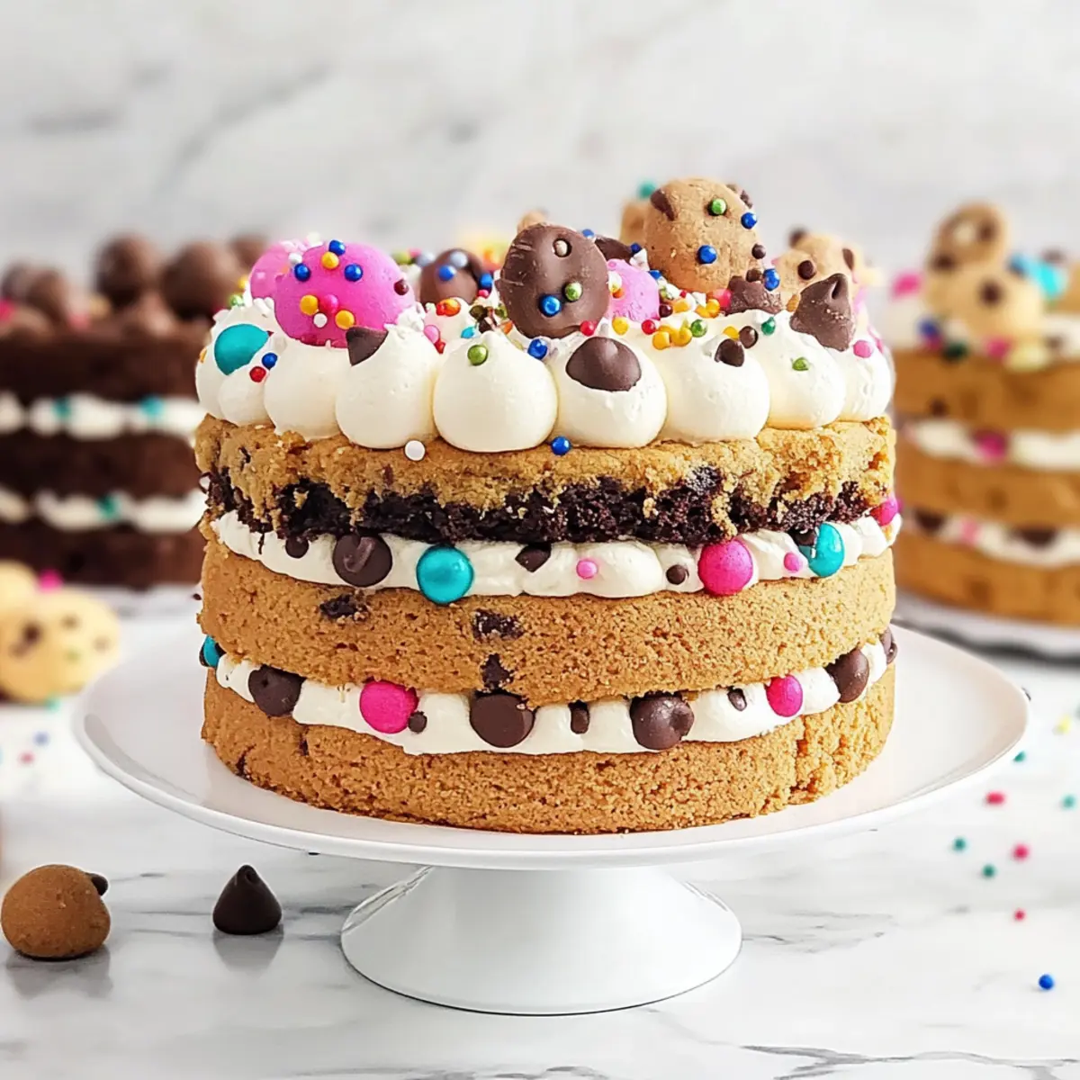 Flavor Explosion: The Ultimate Layered Cookie Cake combines three thrilling layers that appeal to every taste bud—rich Double Chocolate, classic Chocolate Chip, and vibrant Funfetti.